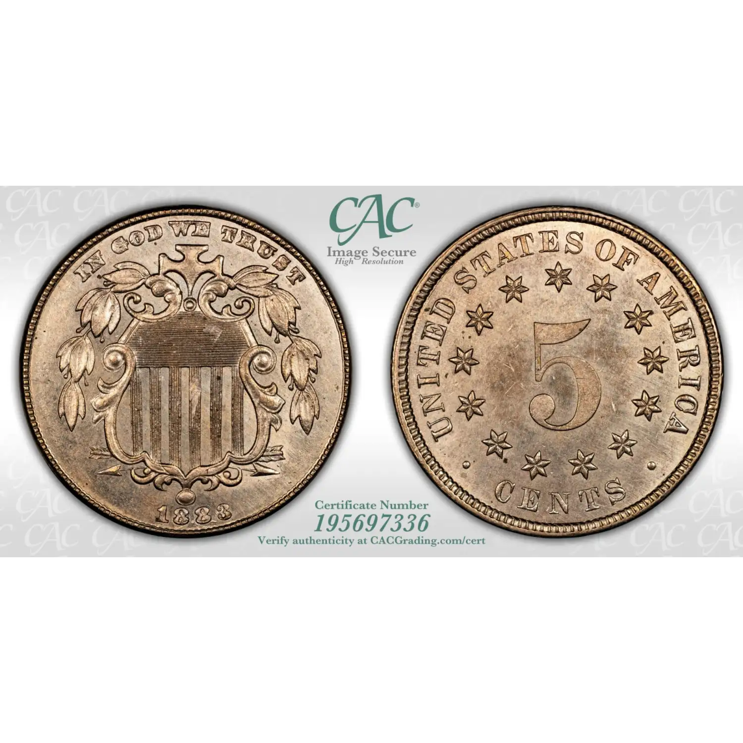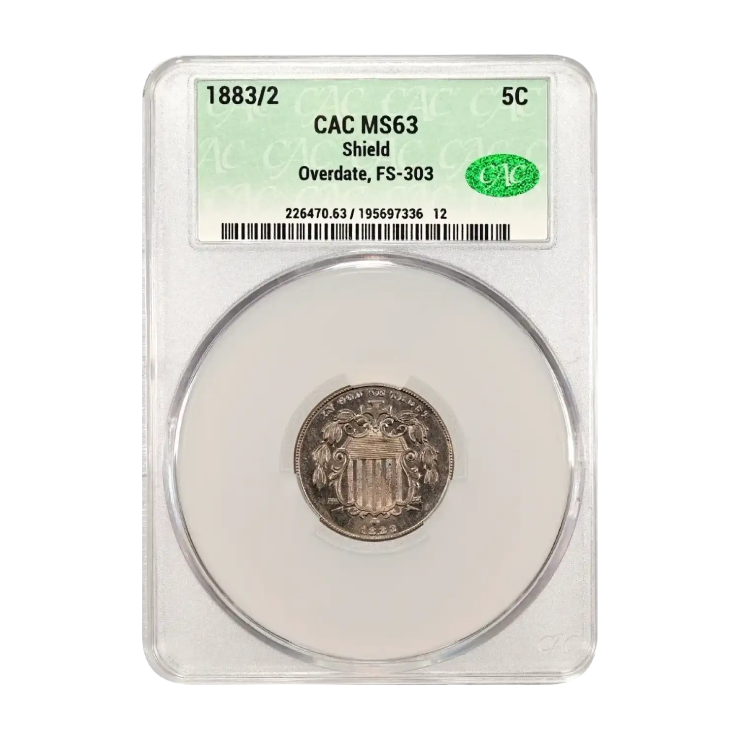1883/2 Shield Nickel CACG MS 63 Shield Overdate, FS-303 CAC