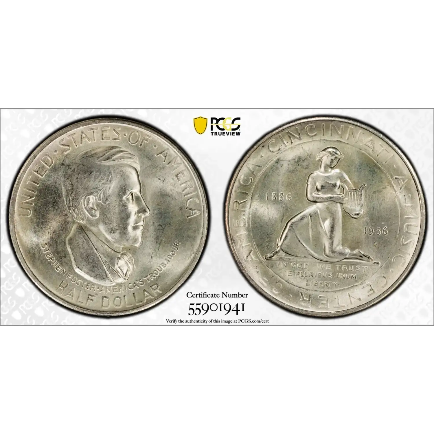 1936-S Classic Commemorative Cincinnati Music Center PCGS MS-65 Cincinnati