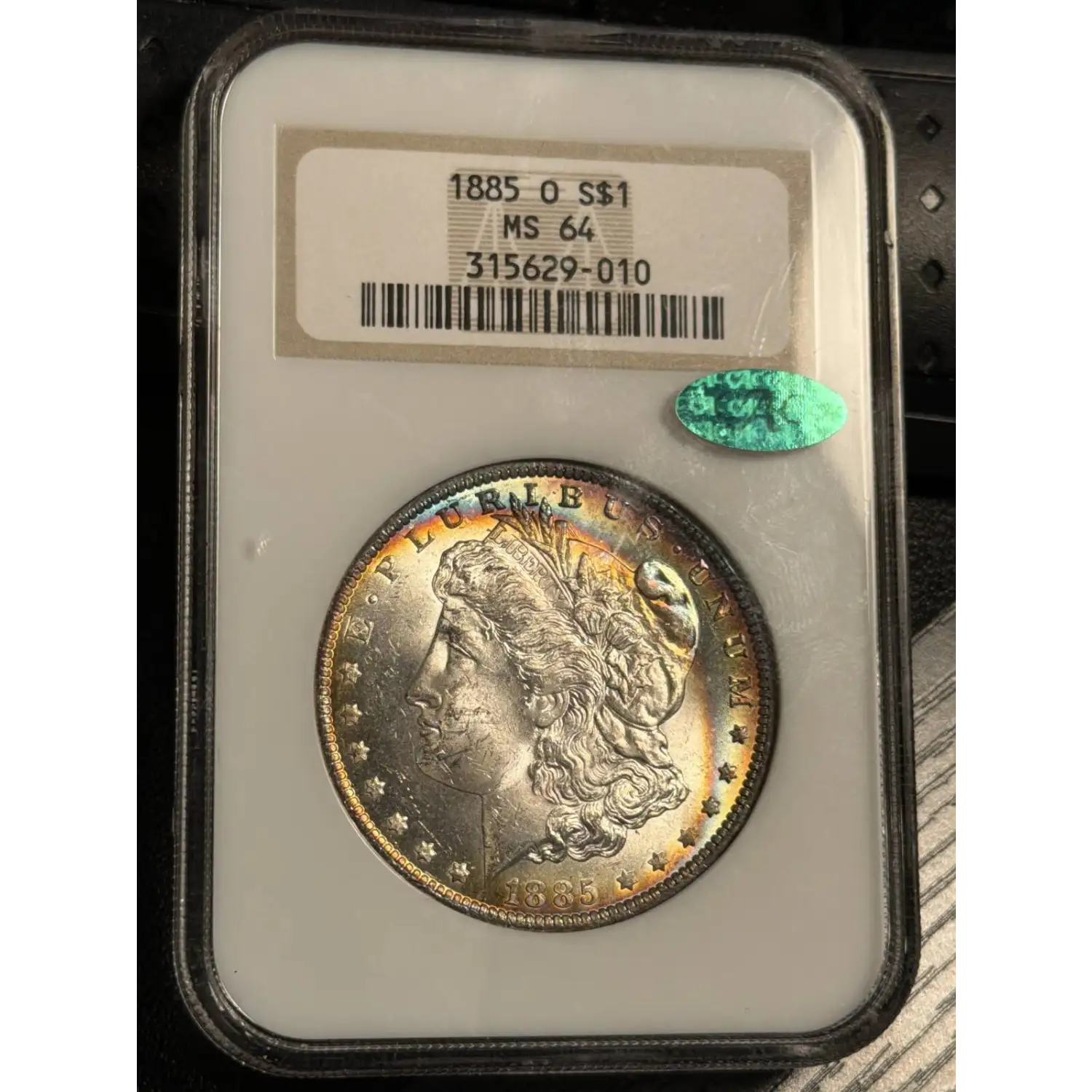 1885-O Morgan Silver Dollar NGC MS-64 OLD FATTY RAINBOW CAC