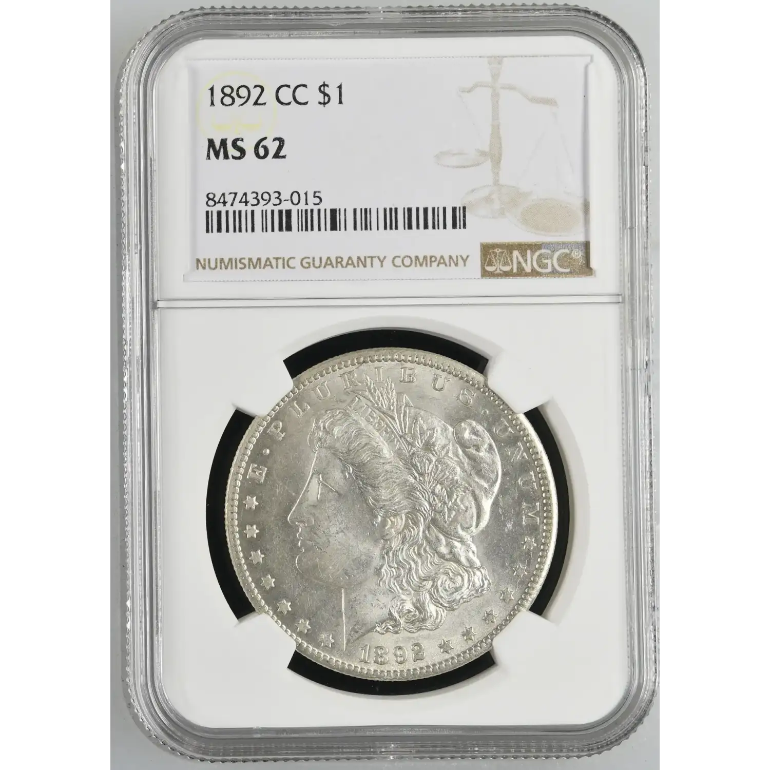 1892-CC Morgan Silver Dollar NGC MS-62 BLAST WHITE