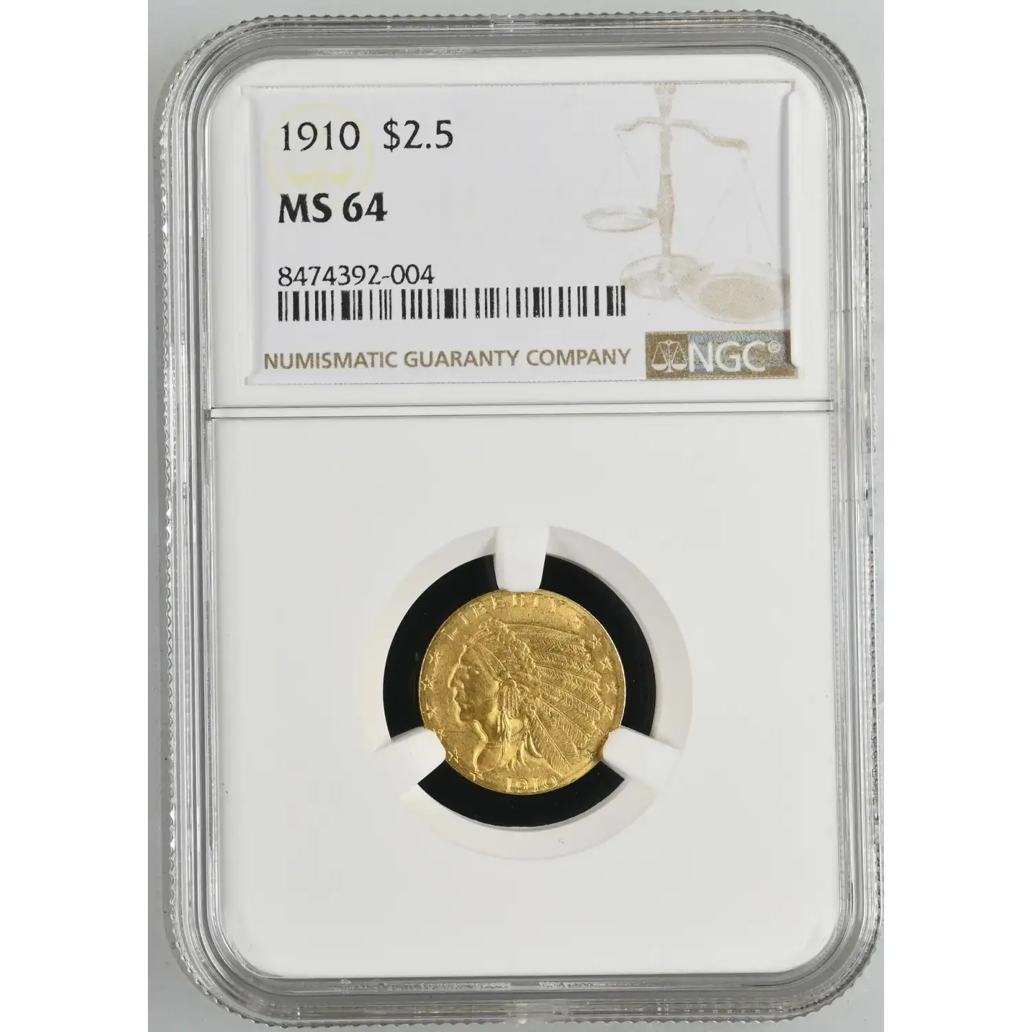 1910 Gold Quarter Eagles $2 1/2 Indian Head NGC MS-64