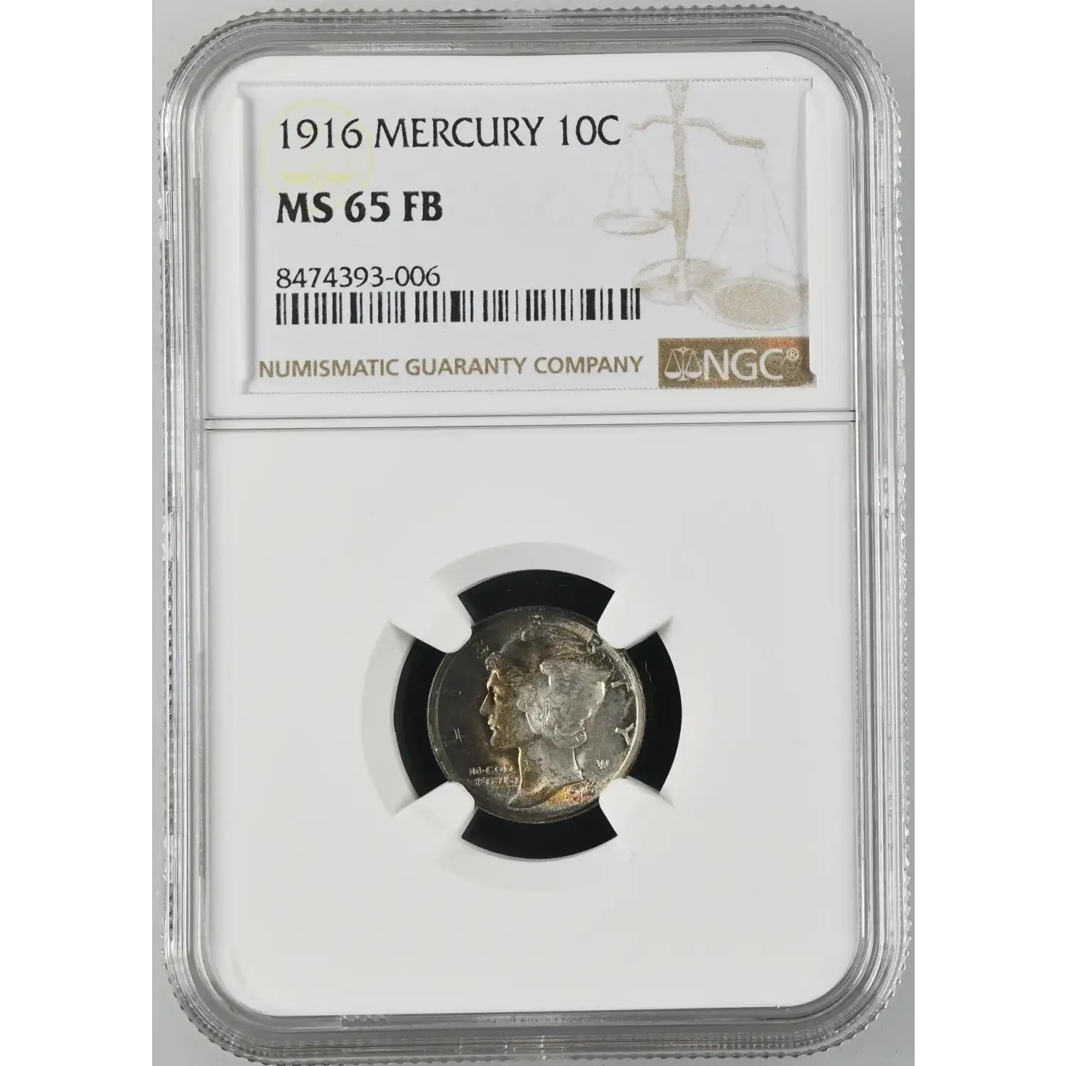1916 Mercury Dime NGC MS-65 FB PQ+ TONED