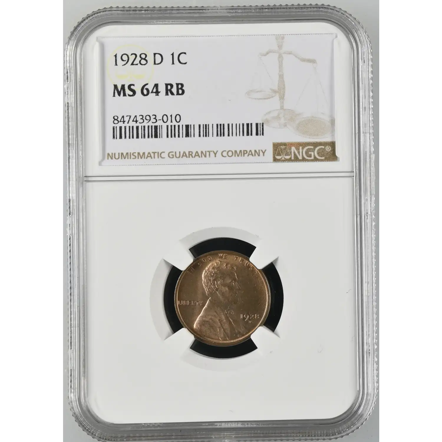 1928-D Lincoln Wheat Cent NGC MS-64 RB PQ+