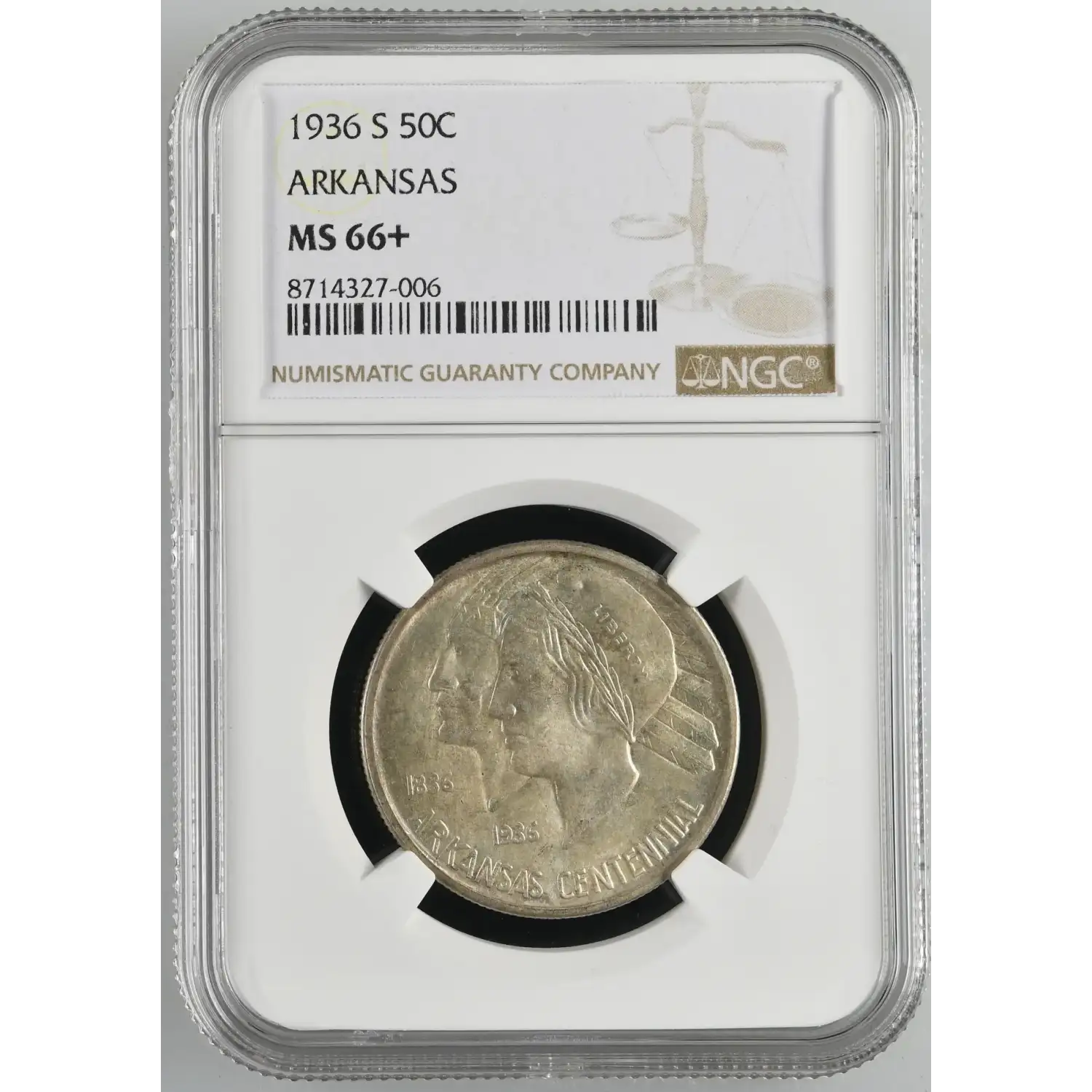 1936-S Classic Commemorative Arkansas Centennial NGC MS-66+ ARKANSAS