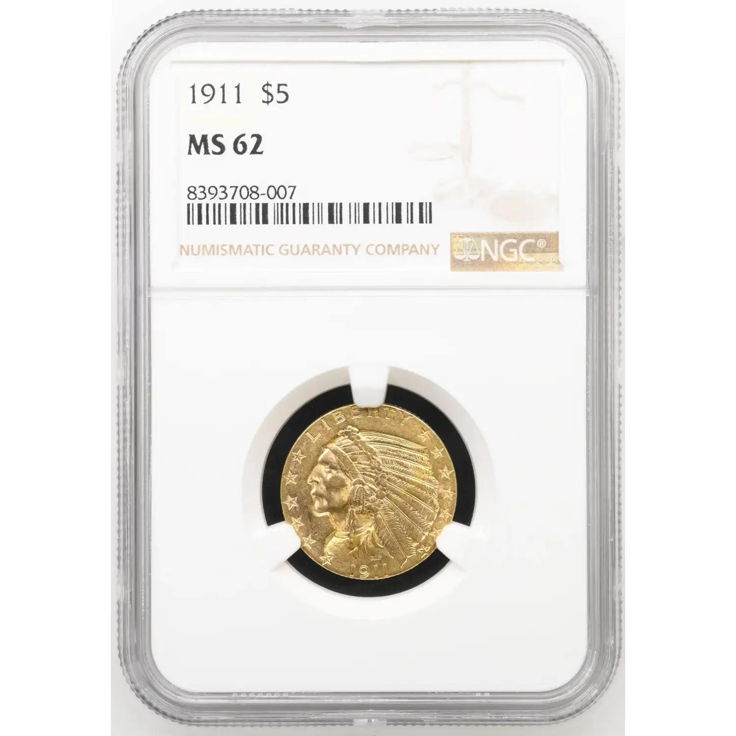 1911 Gold Half Eagles $5 Indian Head NGC MS-62