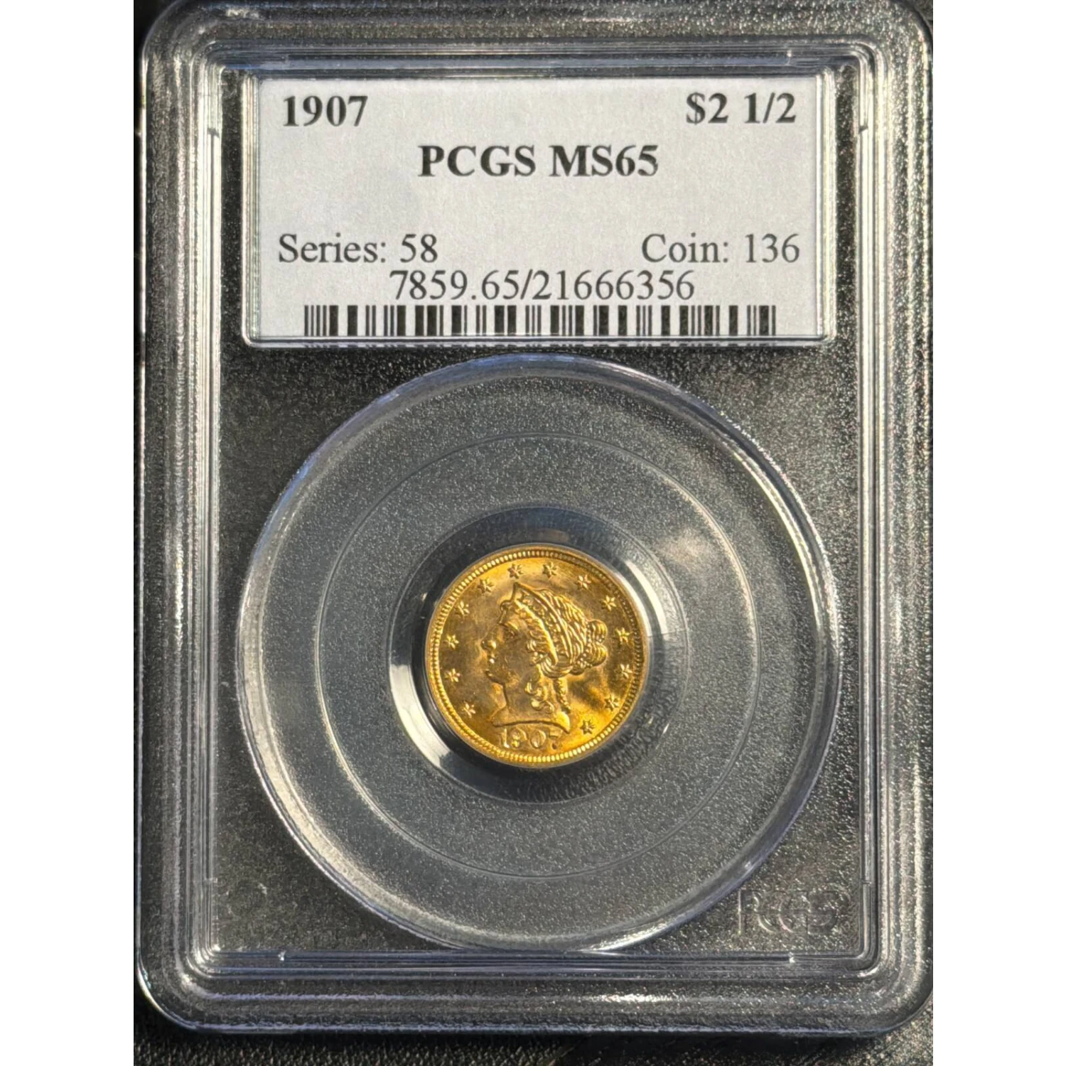 1907 $2.50 Gold Liberty Head Quarter Eagle PCGS MS-65