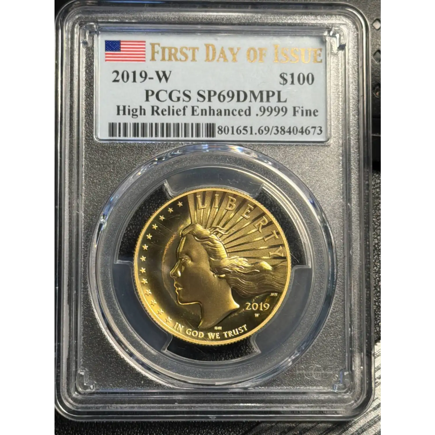 2019 American Liberty Gold PCGS SP-69 DMPL American Liberty High Relief Enhanced .9999 Fine First Day of Issue