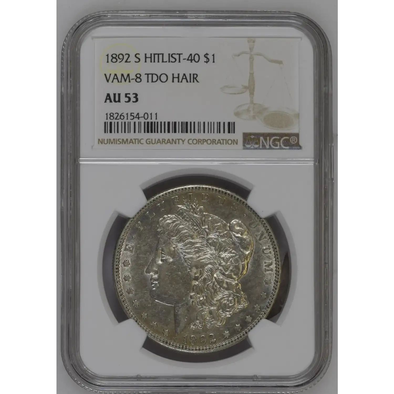 1892-S Morgan Silver Dollar NGC AU-53 S VAM-8 TDO HAIR