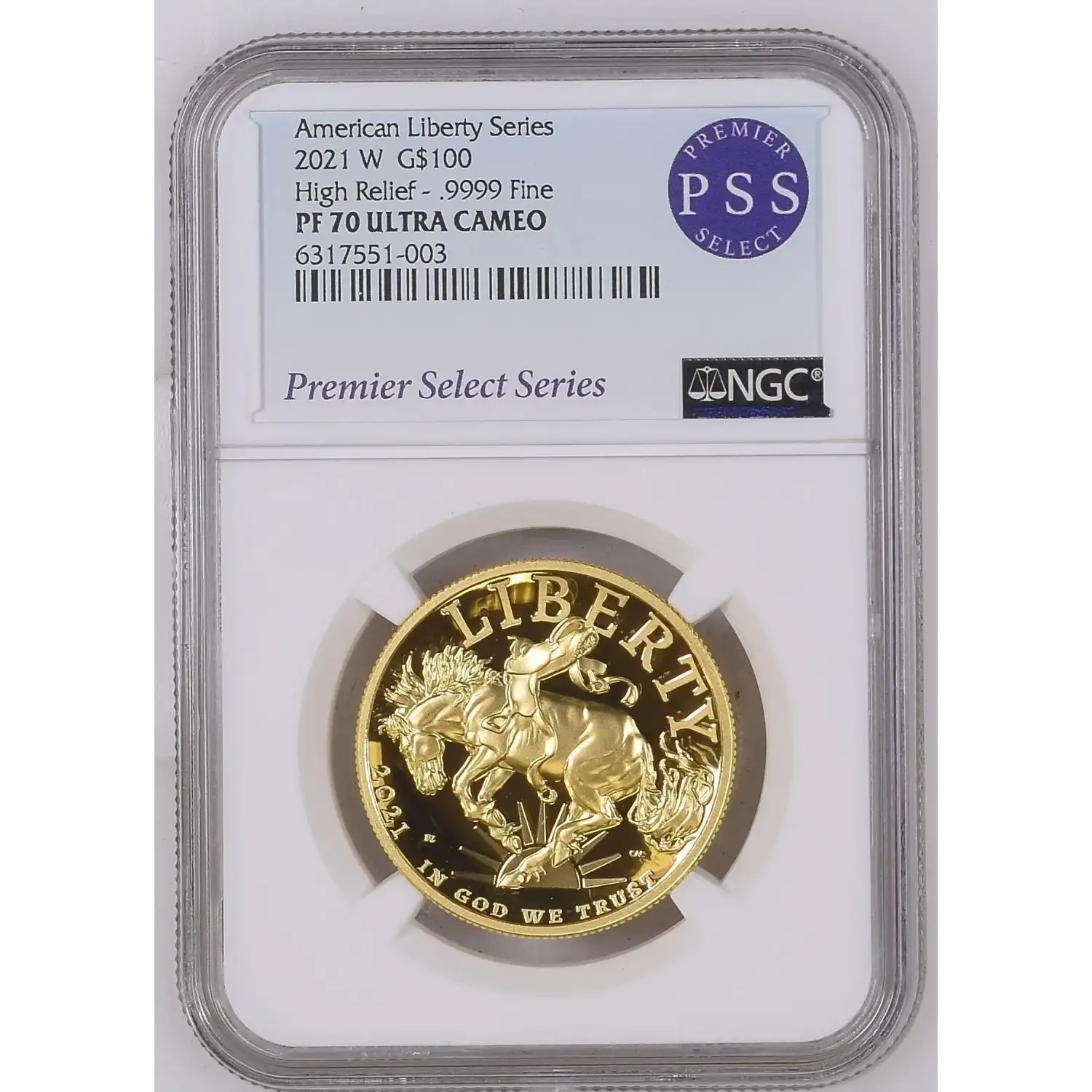 2021-W American Liberty Gold NGC PF-70 ULTRA CAMEO High Relief Bronco