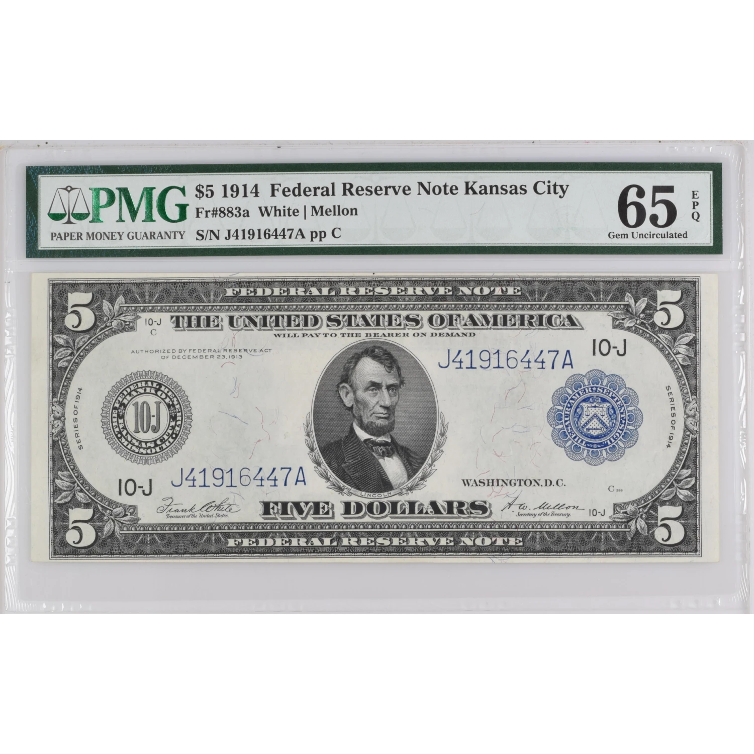 $5 1914 Blue Seal Federal Reserve Notes 883A