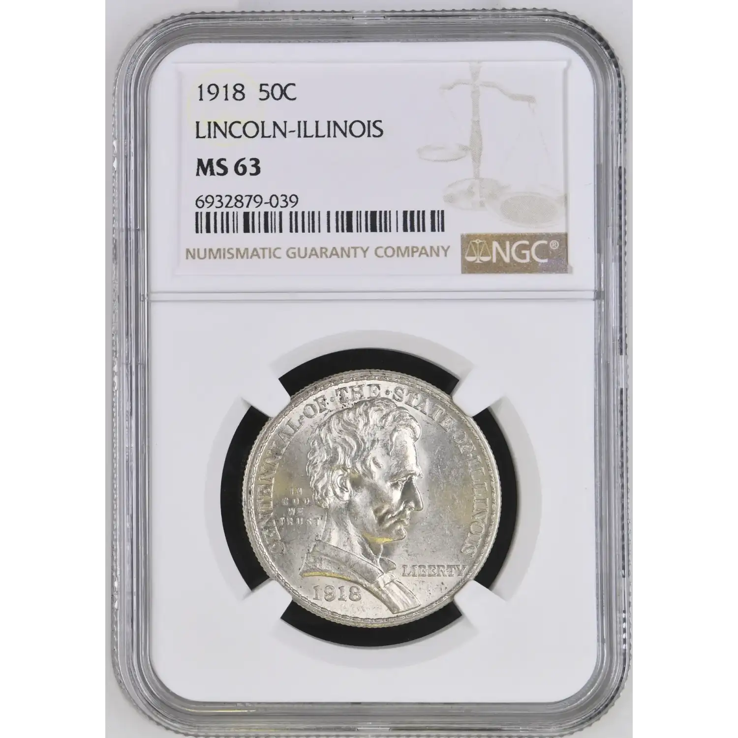 1918 Classic Commemorative Illinois Centennial NGC MS-63 LINCOLN-ILLINOIS CAC