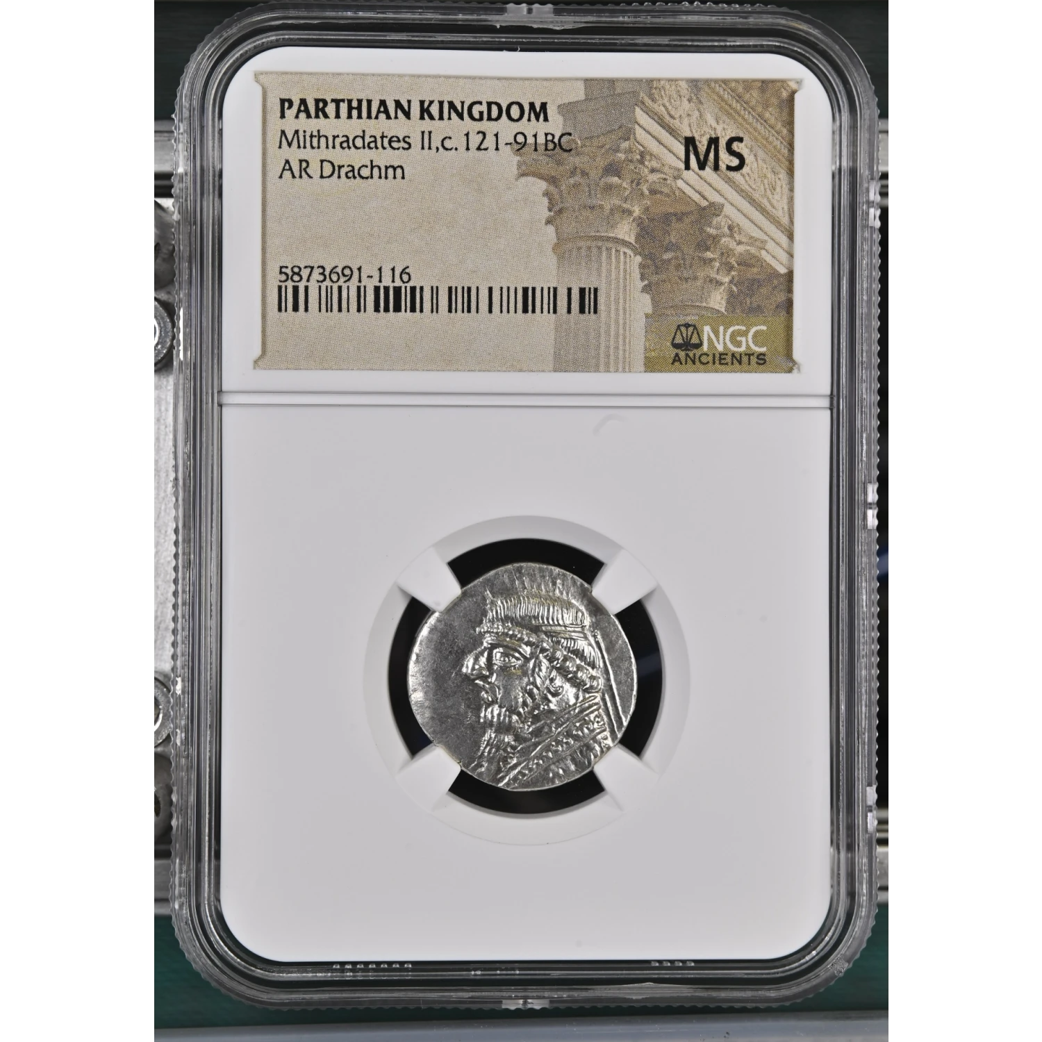 Greece Parthian Kingdom 121-91 BC AR Drachm Mithradates II NGC Ancients MS