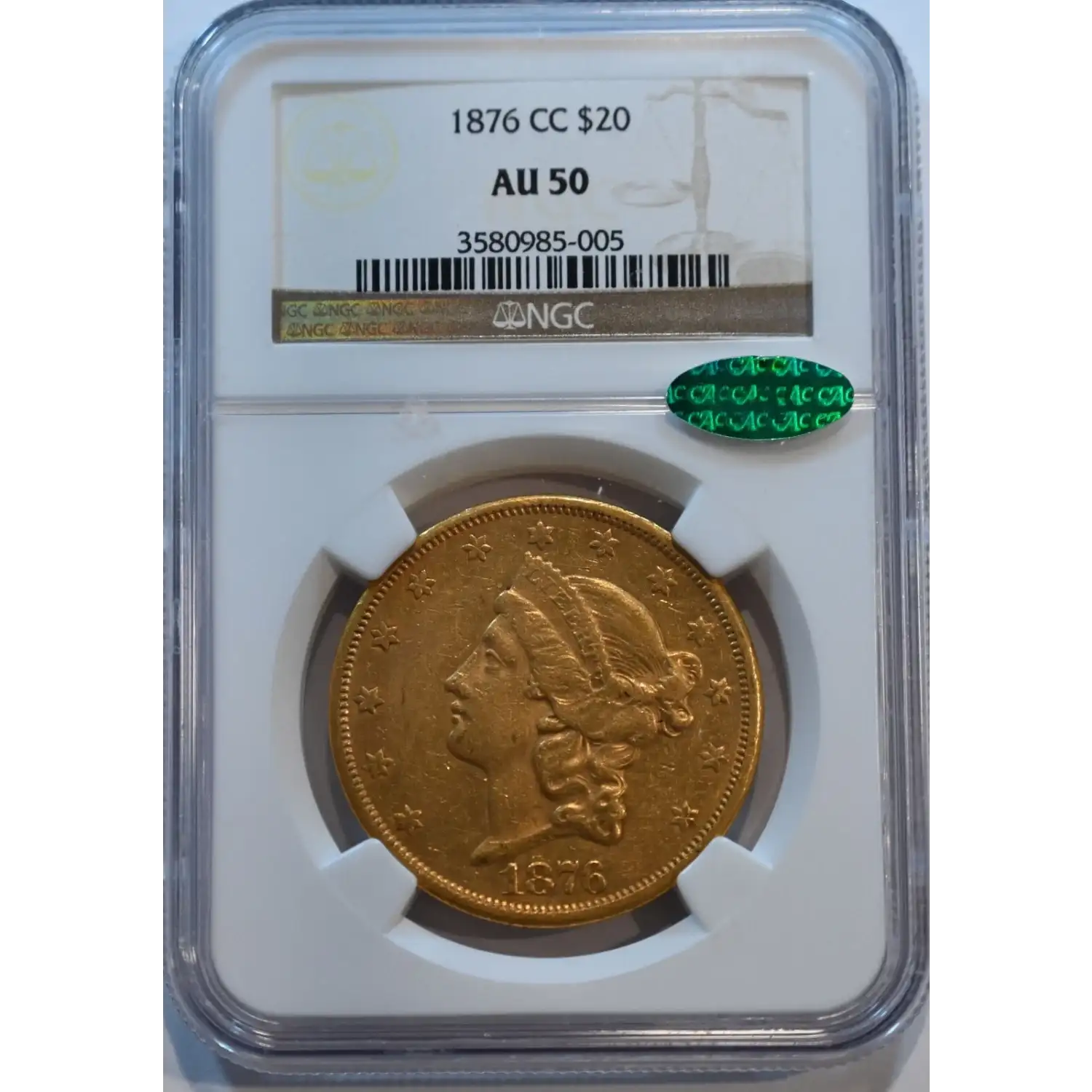 1876-CC Double Eagles Liberty Head NGC AU-50 CAC
