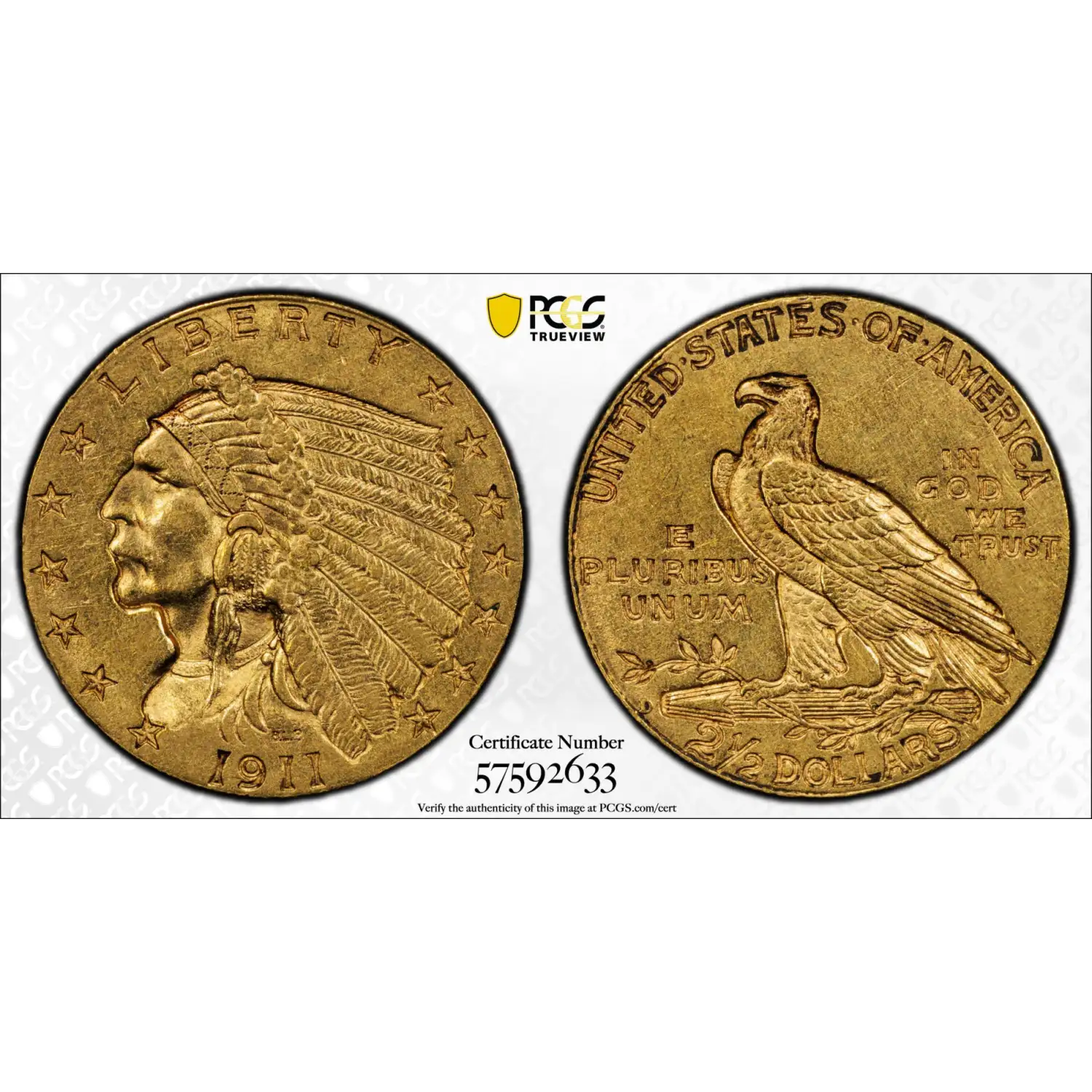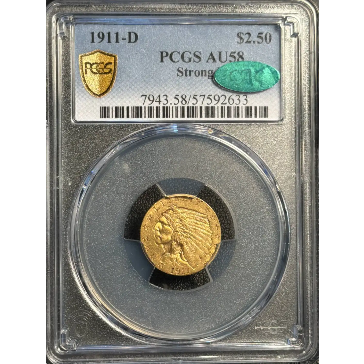 1911-D Gold Quarter Eagles $2 1/2 Indian Head PCGS AU-58 STRONG D CAC