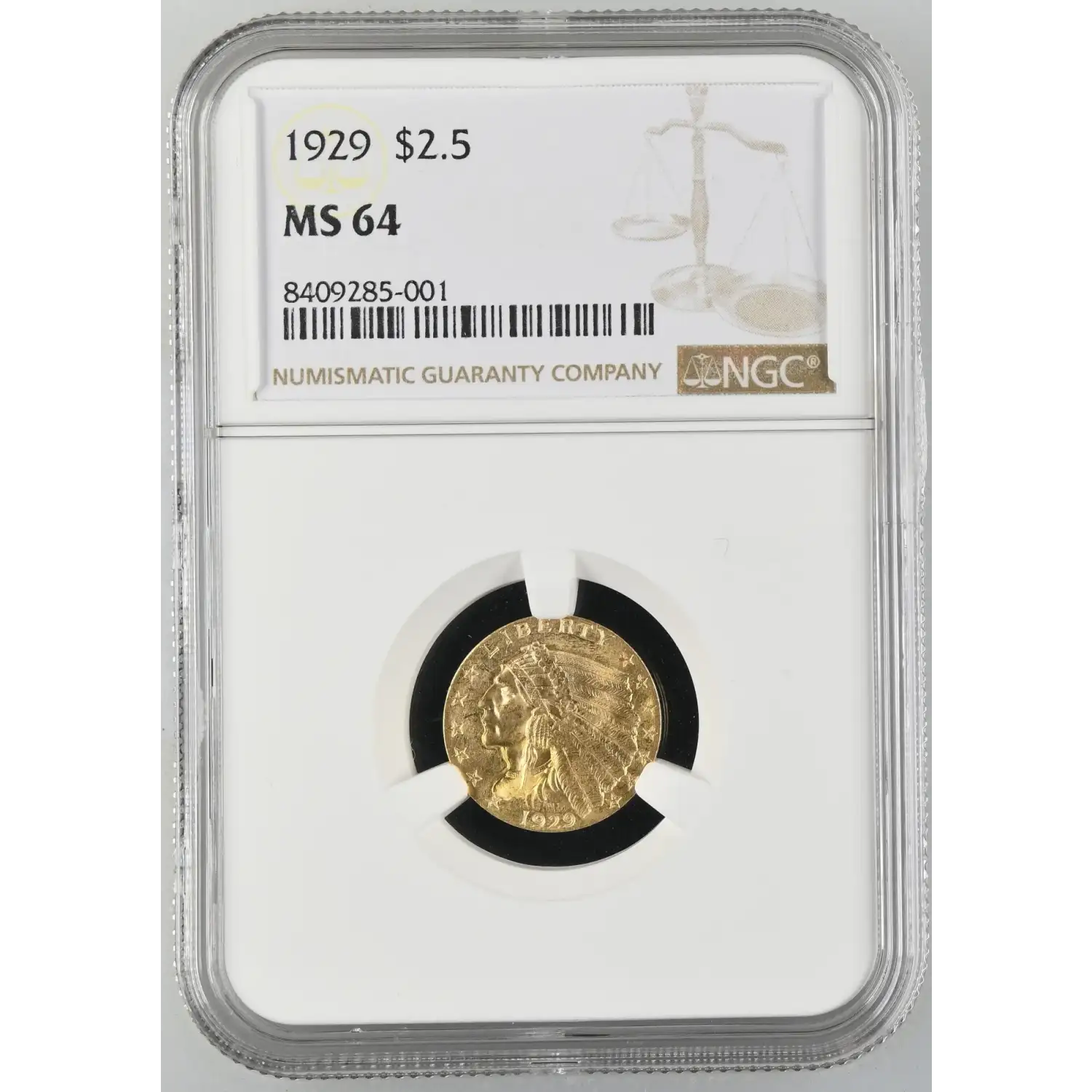 1929 Gold Quarter Eagles $2 1/2 Indian Head NGC MS-64 PQ