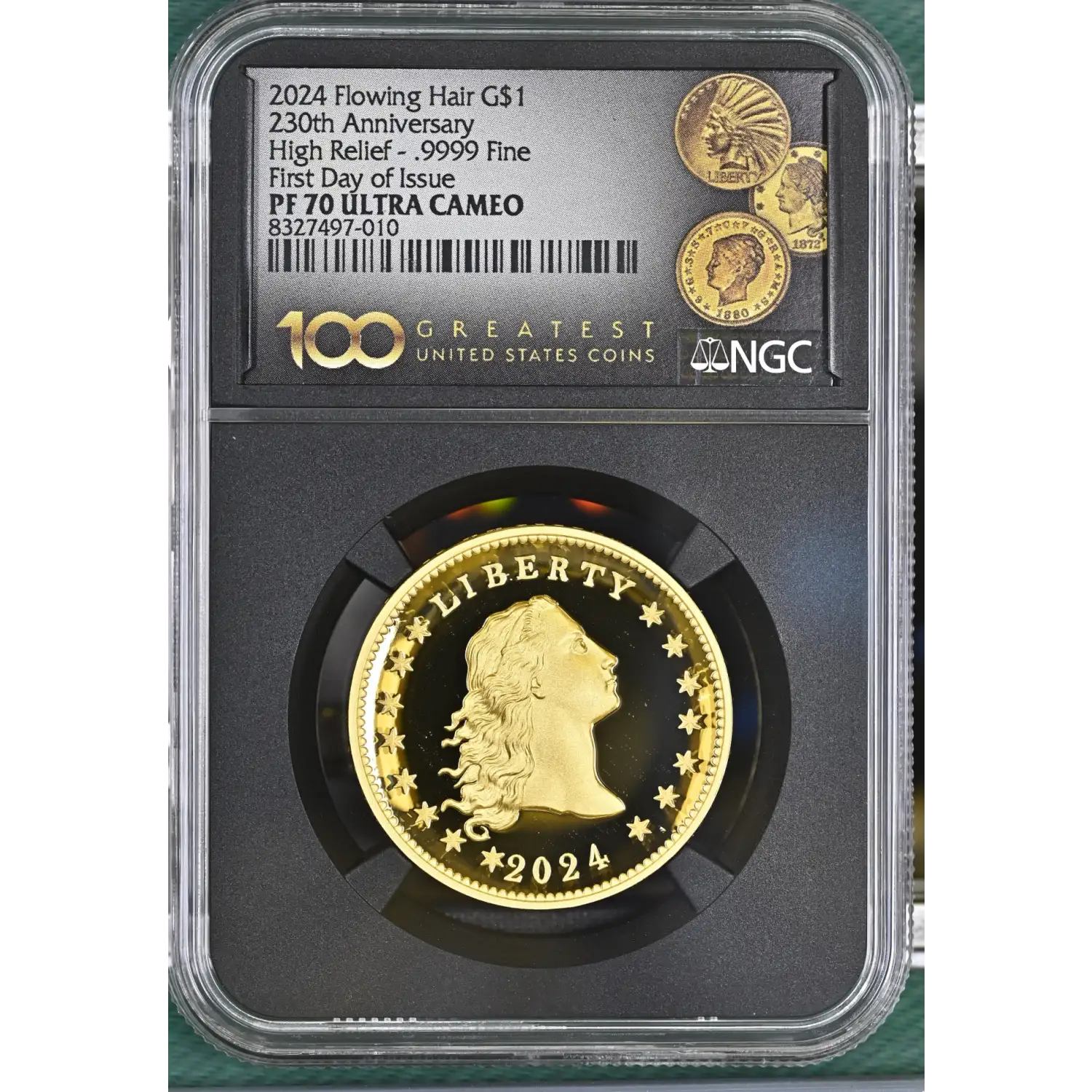 2024 Gold Flowing Hair Dollar NGC PF-70 ULTRA CAMEO 230th Anniversary - FDI High Relief - .9999 Fine