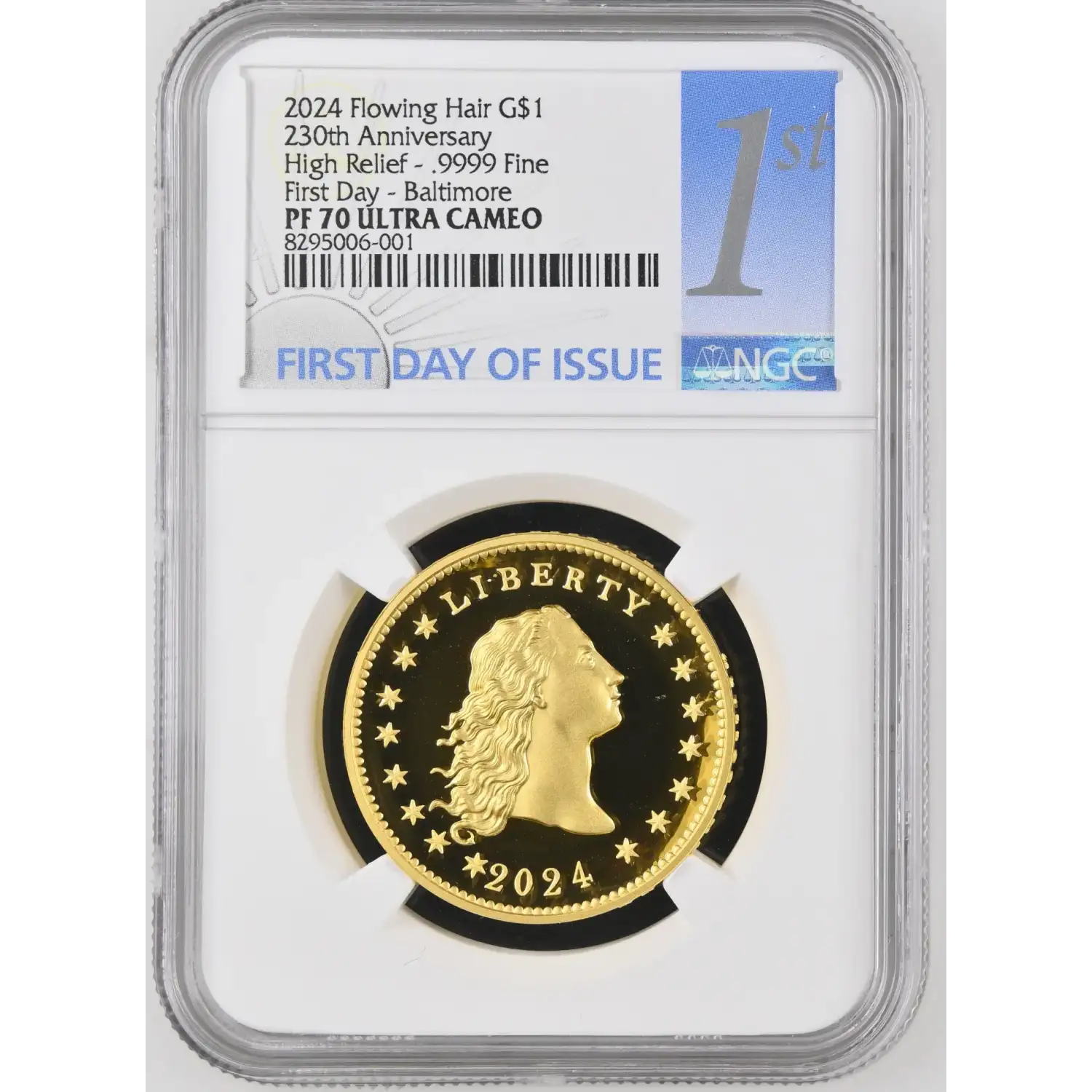 2024 Gold Flowing Hair Dollar NGC PF-70 ULTRA CAMEO 230th Anniversary - FDB High Relief - .9999 Fine