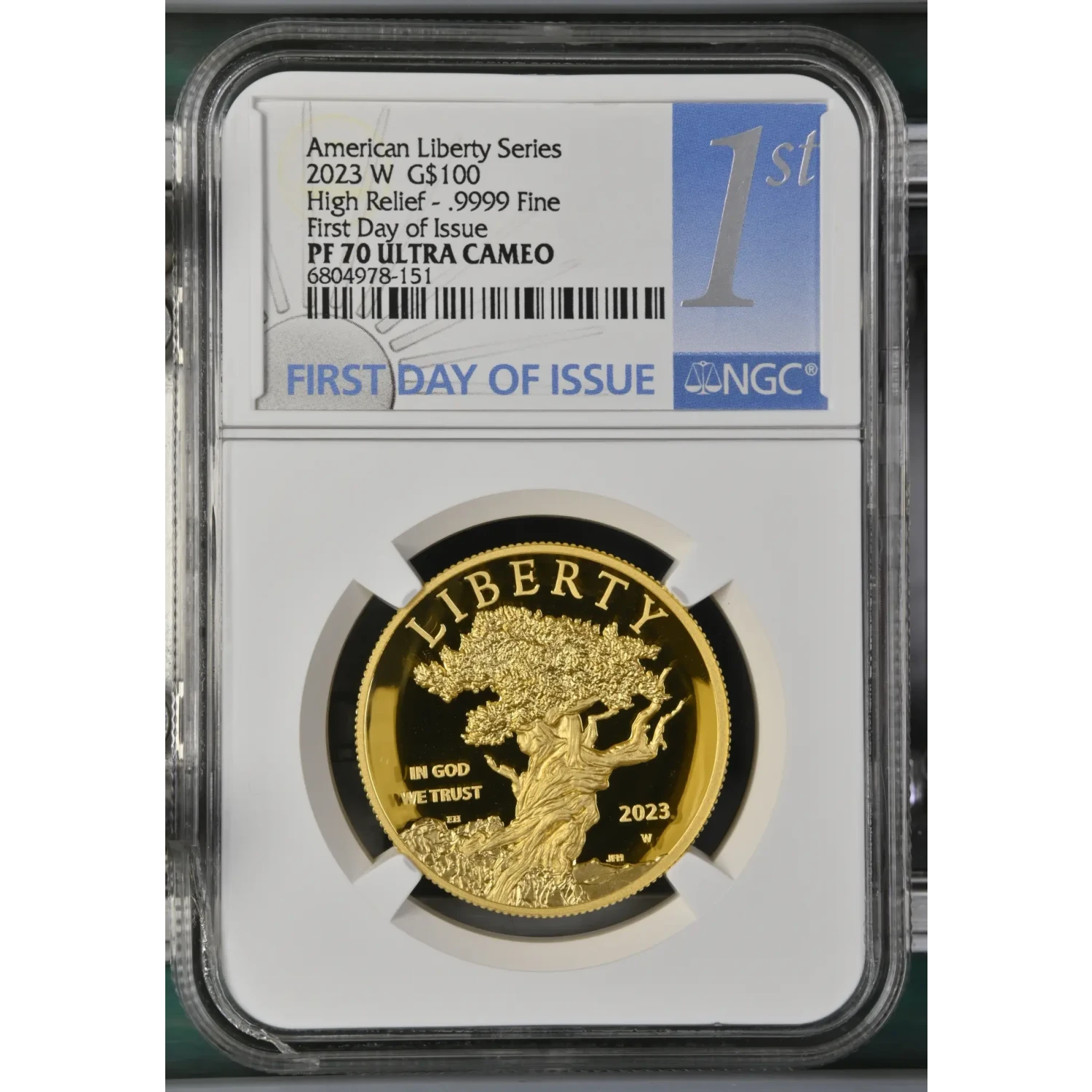 2023 W High Relief - .9999 Fine First Day of Issue American Liberty Series ULTRA CAMEO W