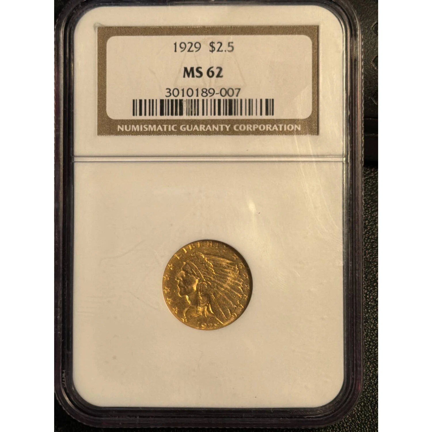 1929 Gold Quarter Eagles $2 1/2 Indian Head NGC MS-62