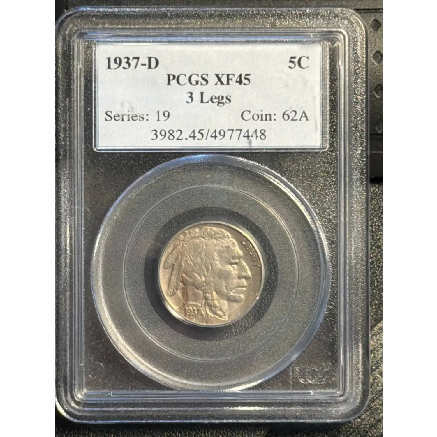 1937-D Buffalo Nickel PCGS XF-45 LOOKS AU+ 3 Legs