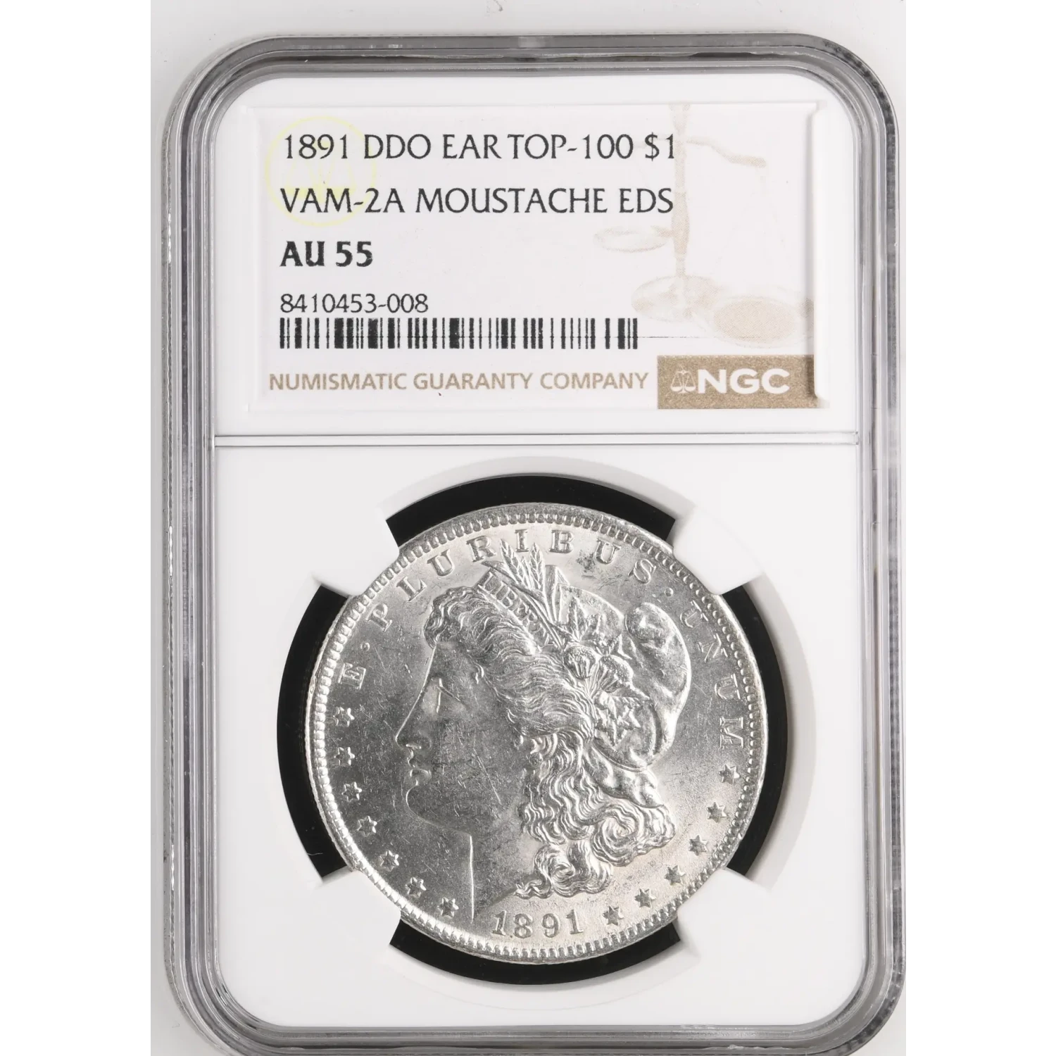 1891 Morgan Silver Dollar NGC AU-55 DDO EAR VAM-2A MOUSTACHE EDS