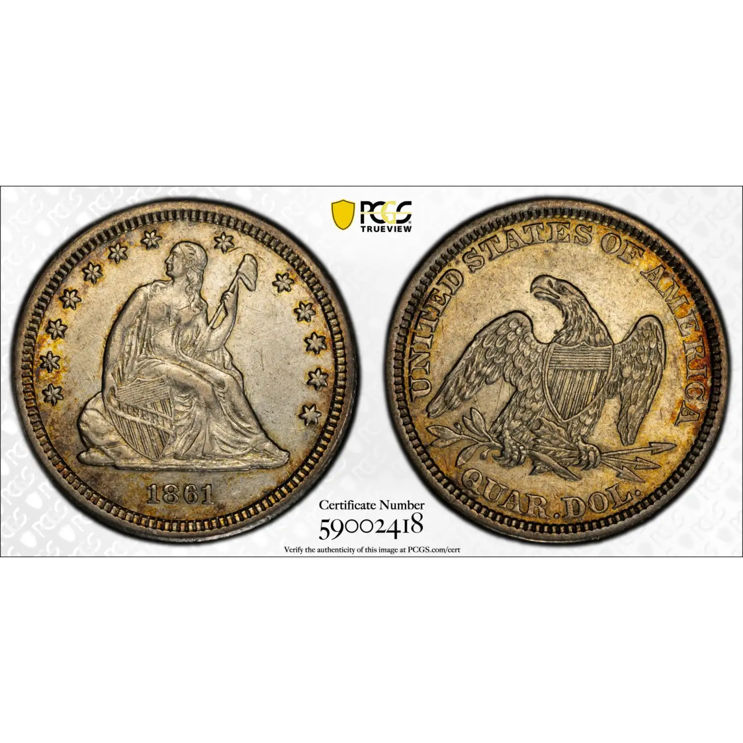 1861 Seated Liberty Quarter PCGS XF-45 LOOKS AU+