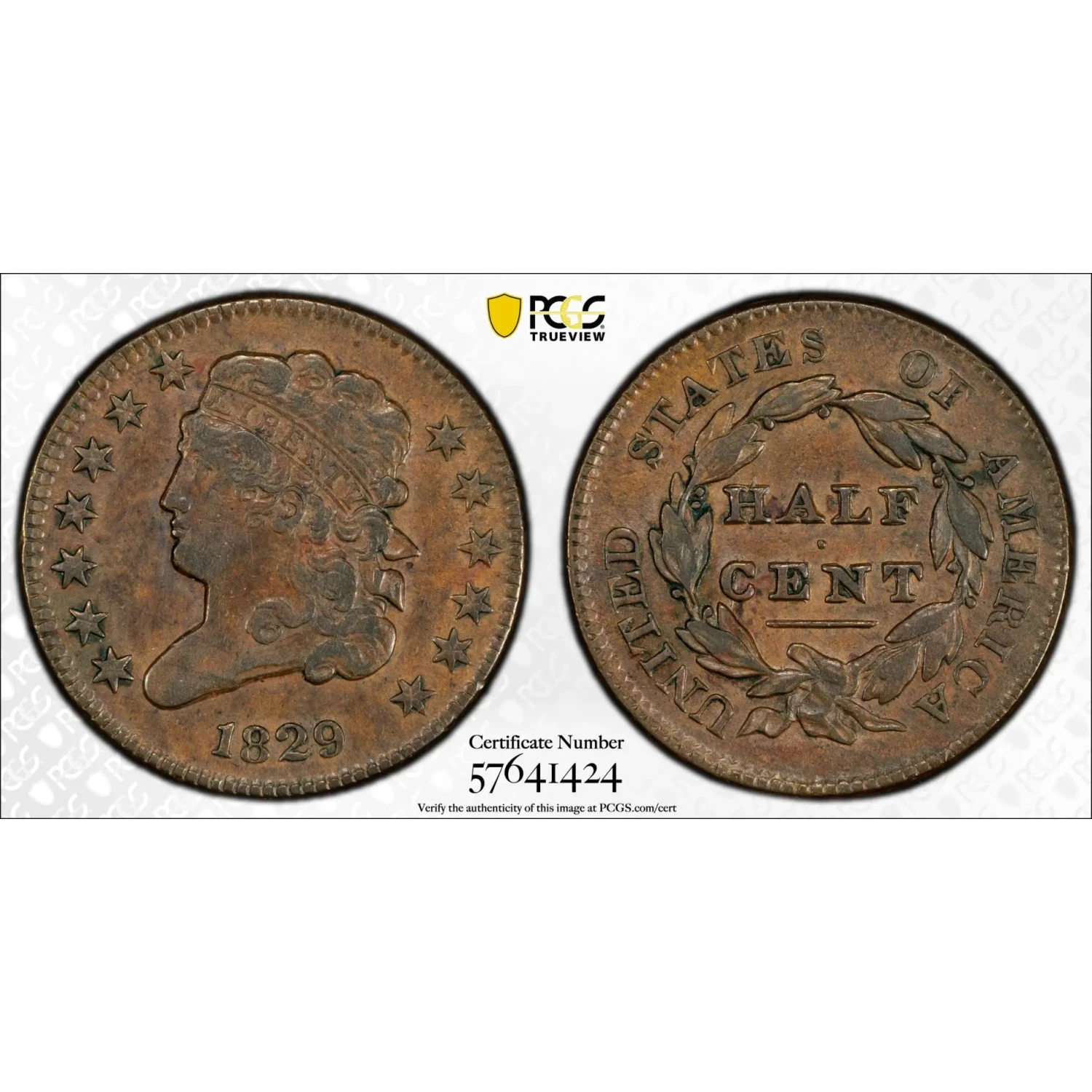 1829 Half Cents Classic Head 1809 - 36 PCGS AU-50 BN