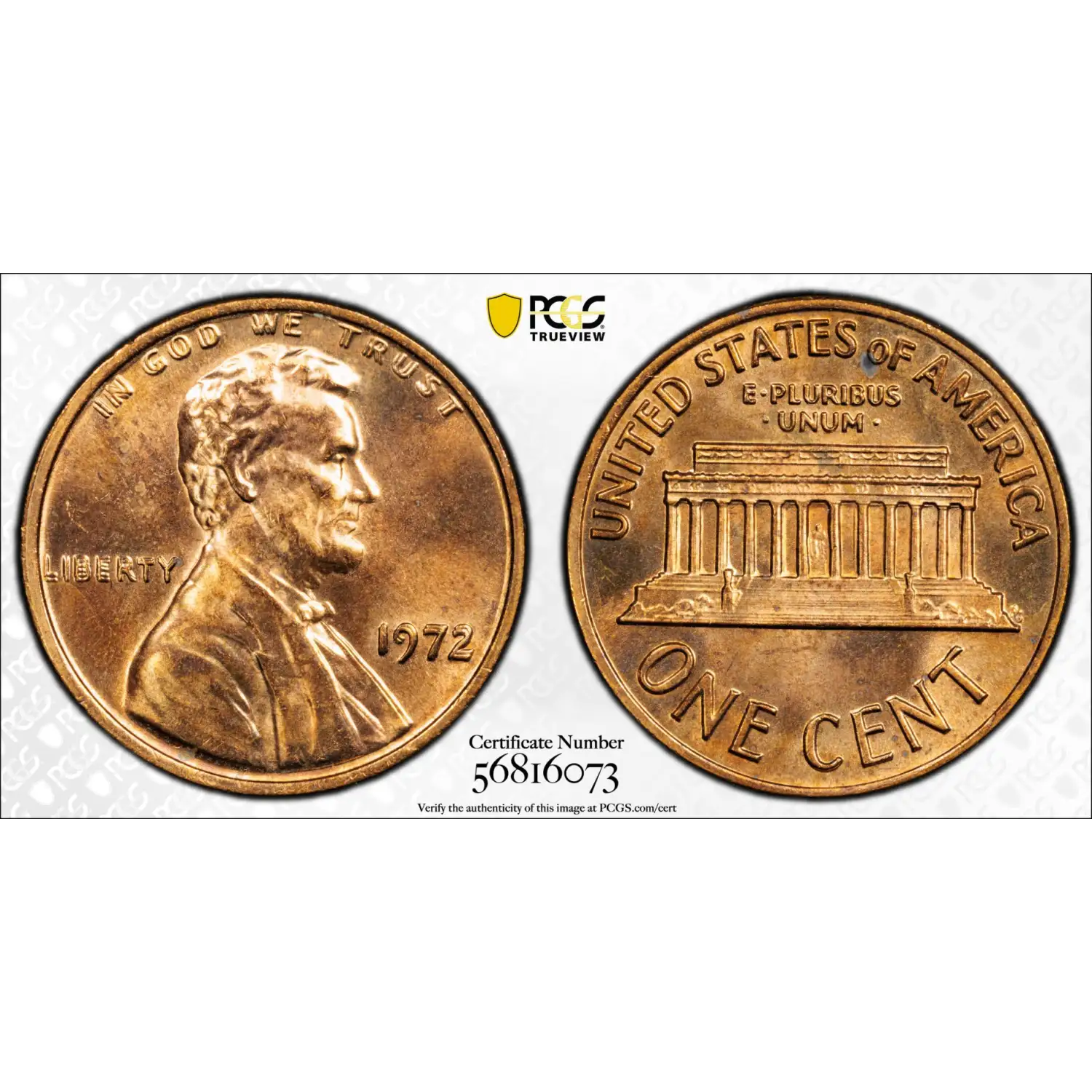 1972 Lincoln Memorial Cent PCGS MS-64 RD Doubled Die Obverse