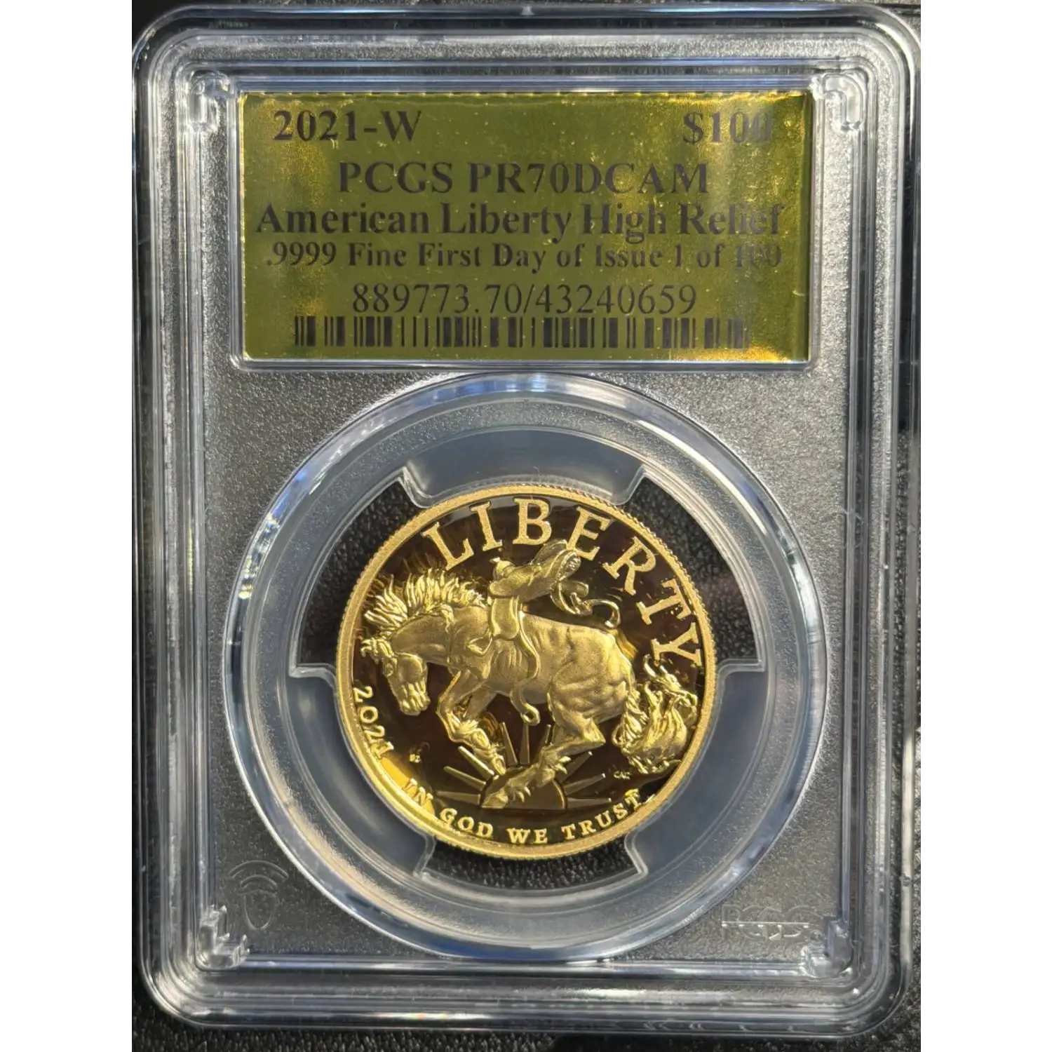 2021-W $100 American Liberty High Relief .9999 Fine First Day of Issue 1 of 100, DCAM W