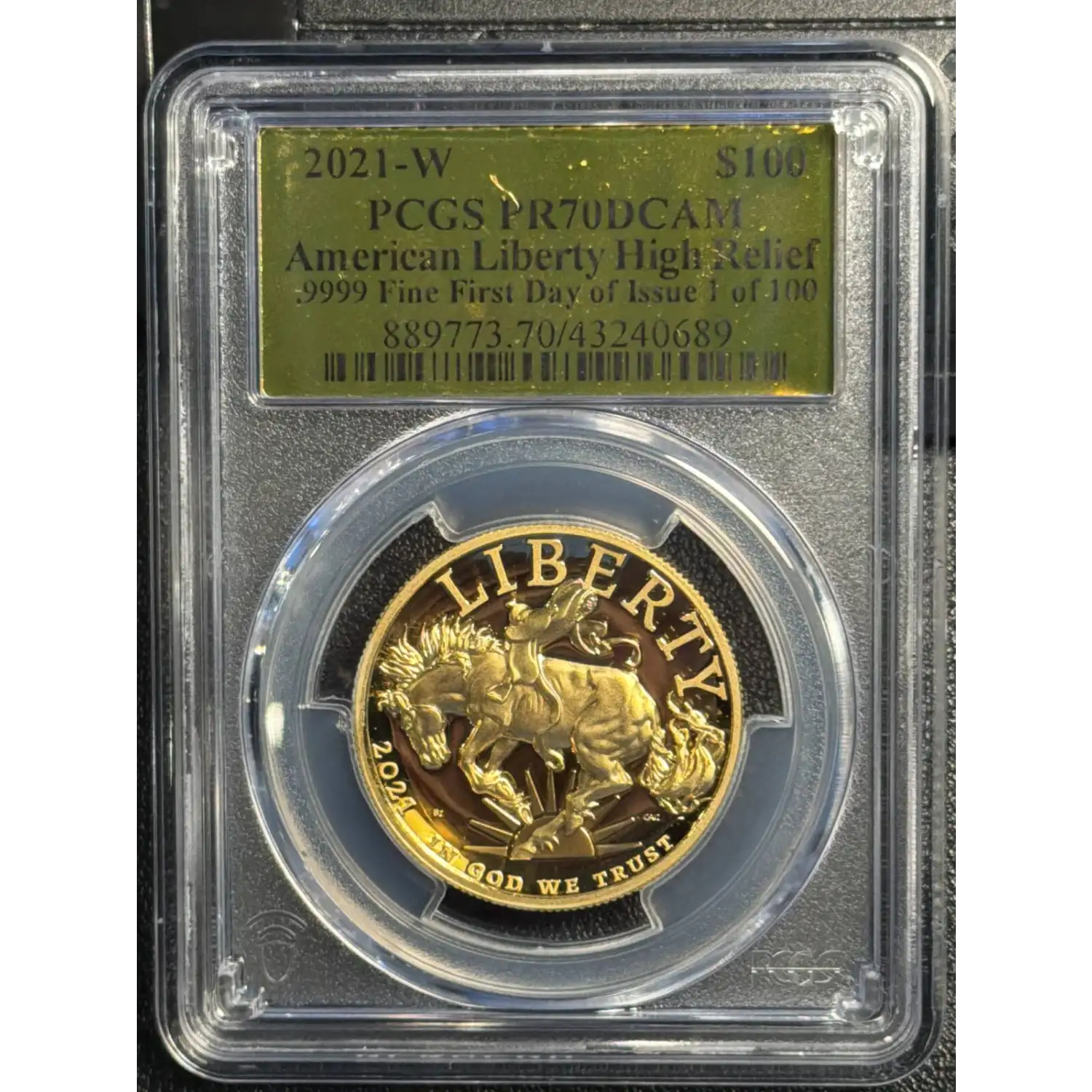 2021-W $100 American Liberty High Relief .9999 Fine First Day of Issue 1 of 100, DCAM W