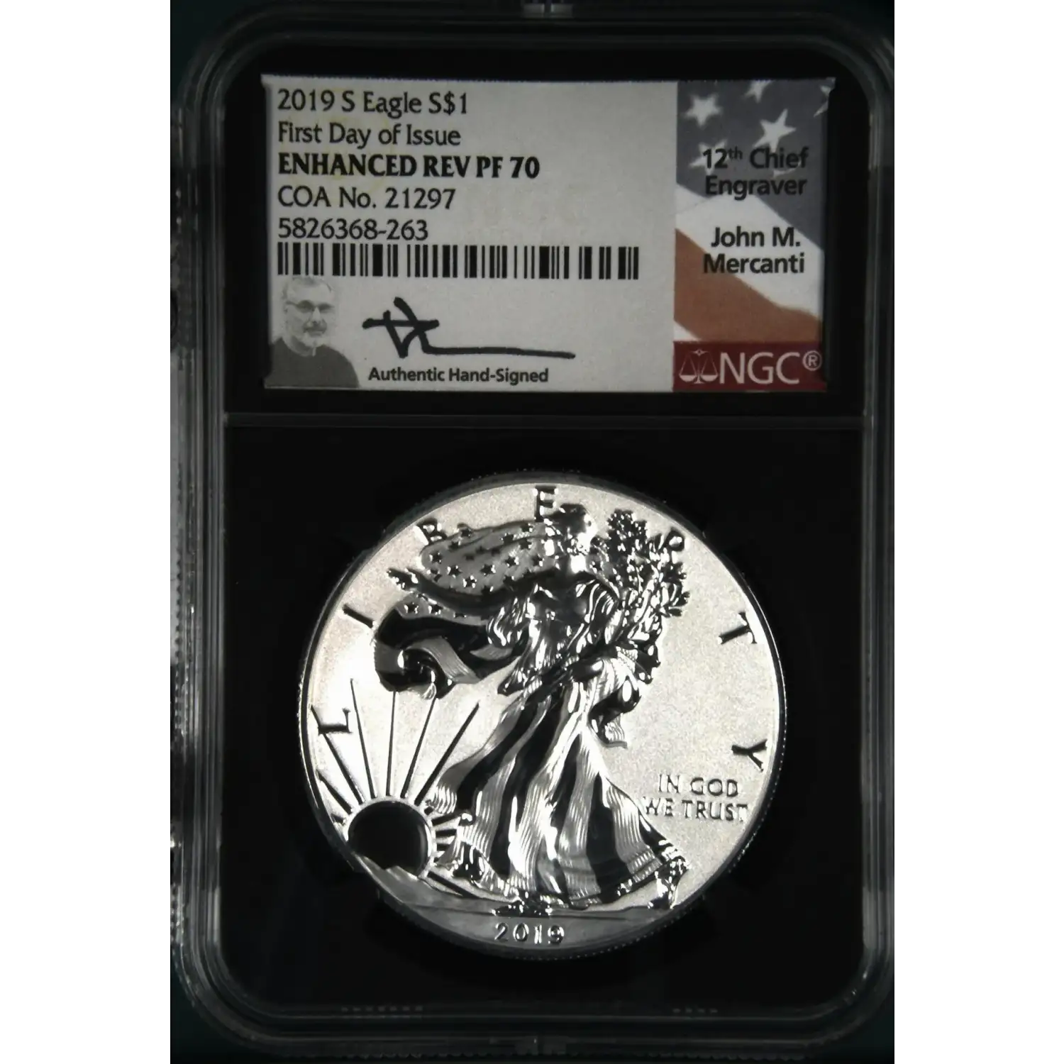 2019-S Bullion Silver Eagles NGC PF-70 MERCANTI First Day of Issue