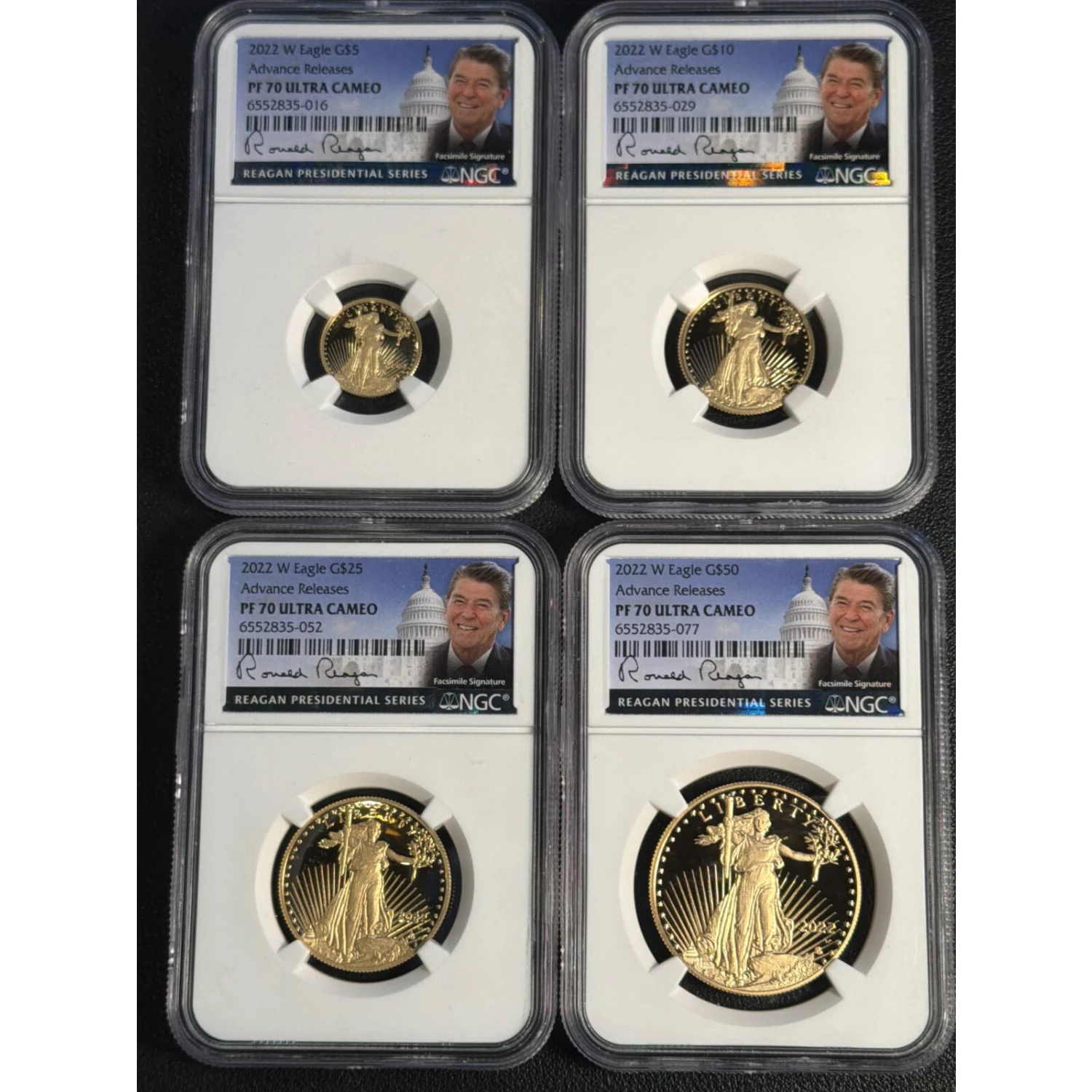 2022-W Bullion Four Coin Gold Eagle Proof Set 1oz, 1/2oz, 1/4oz, 1/10oz NGC PF-70 Advance Releases Ronald Reagan