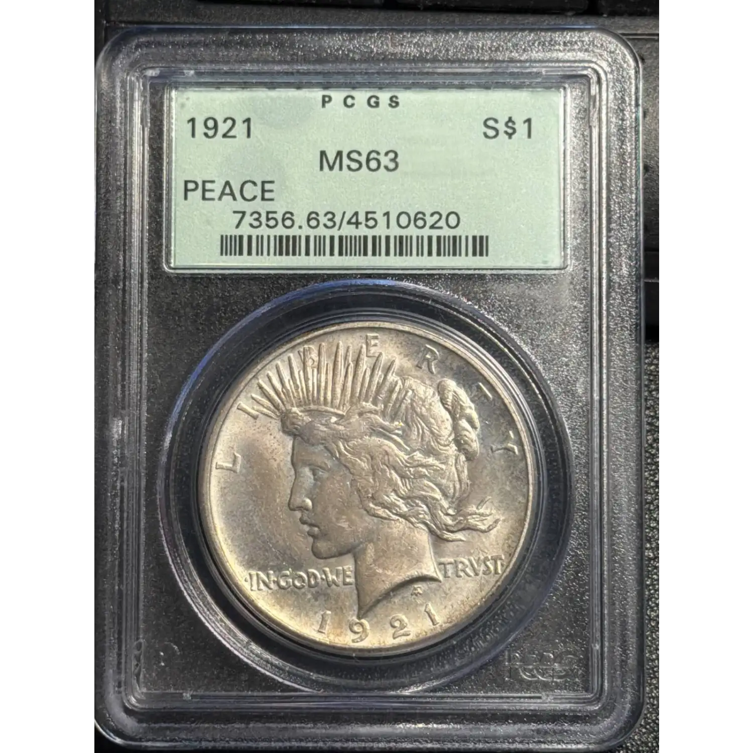 1921 Peace Silver Dollar PCGS MS-63 OGH PQ Peace HIGH RELIEF