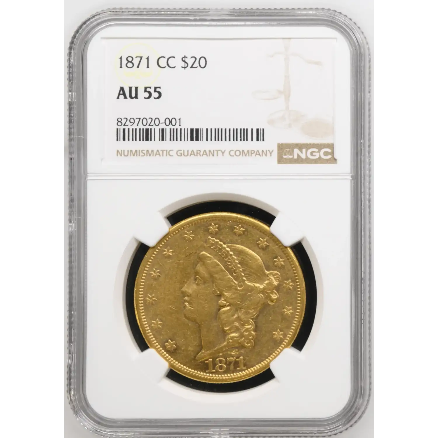 1871-CC Double Eagles Liberty Head NGC AU-55 PQ LOOKS 58