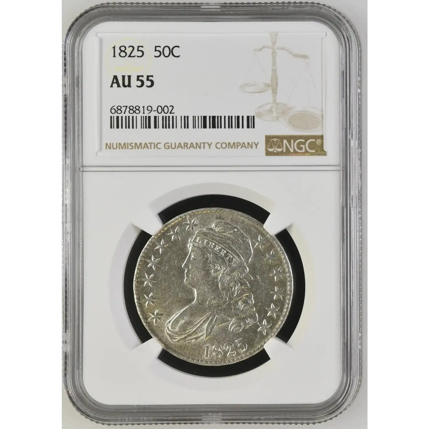 1825 Capped Bust Half Dollars NGC AU-55 PQ+ LOOKS 58+