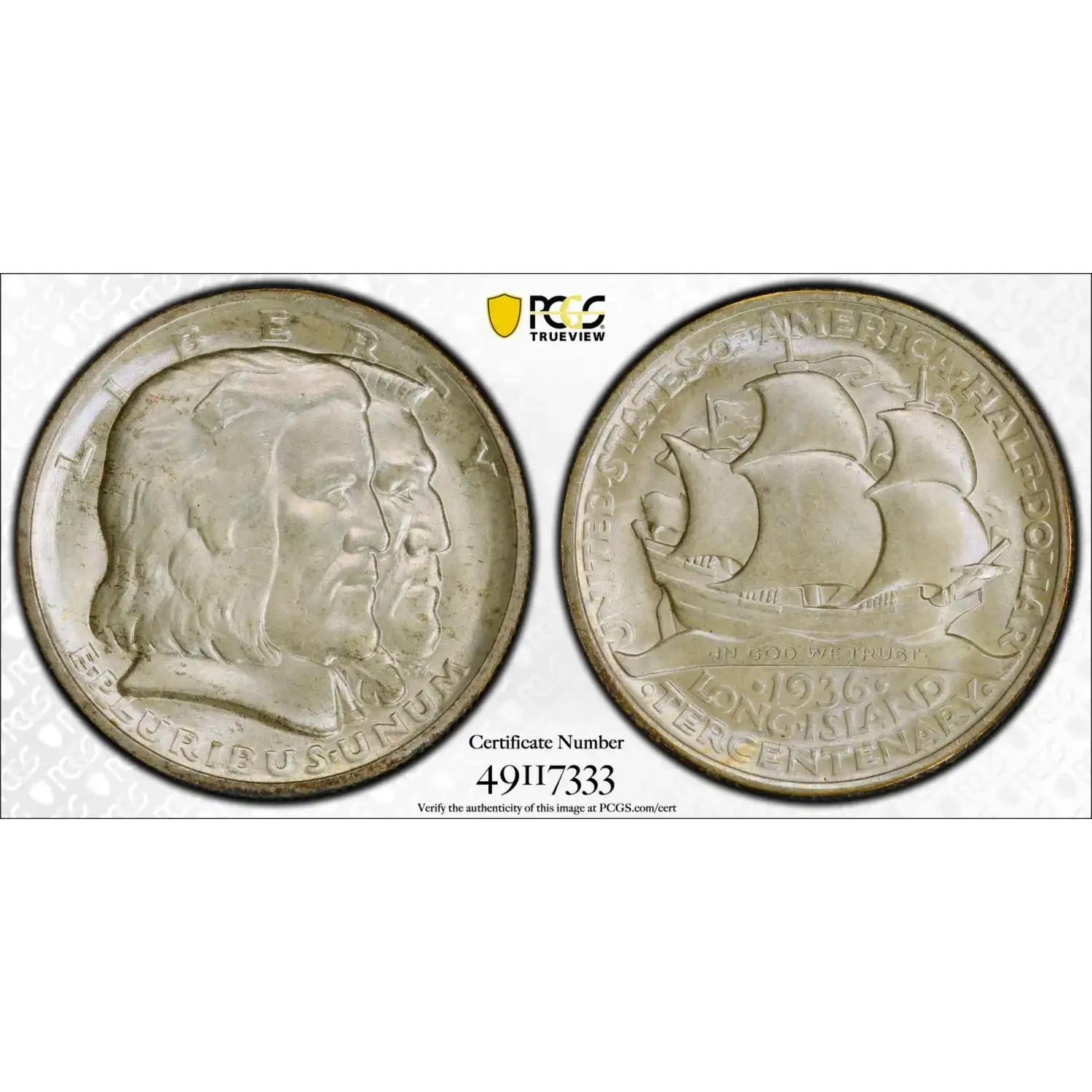 1936 Long Island 50c Commemorative PCGS MS-66+ Long Island CAC