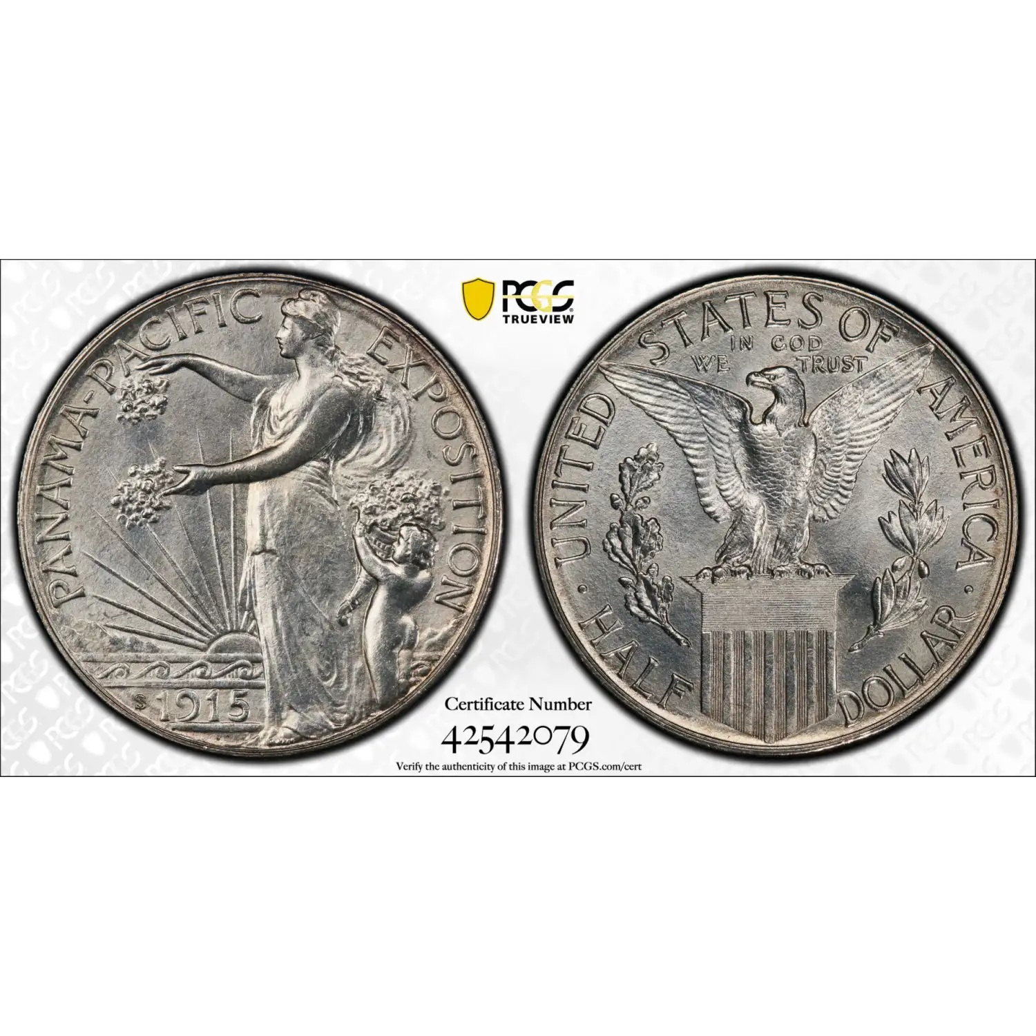 1915-S Panama - Pacific Exposition 50c Commemorative PCGS MS-64 PQ+ Panama-Pacific