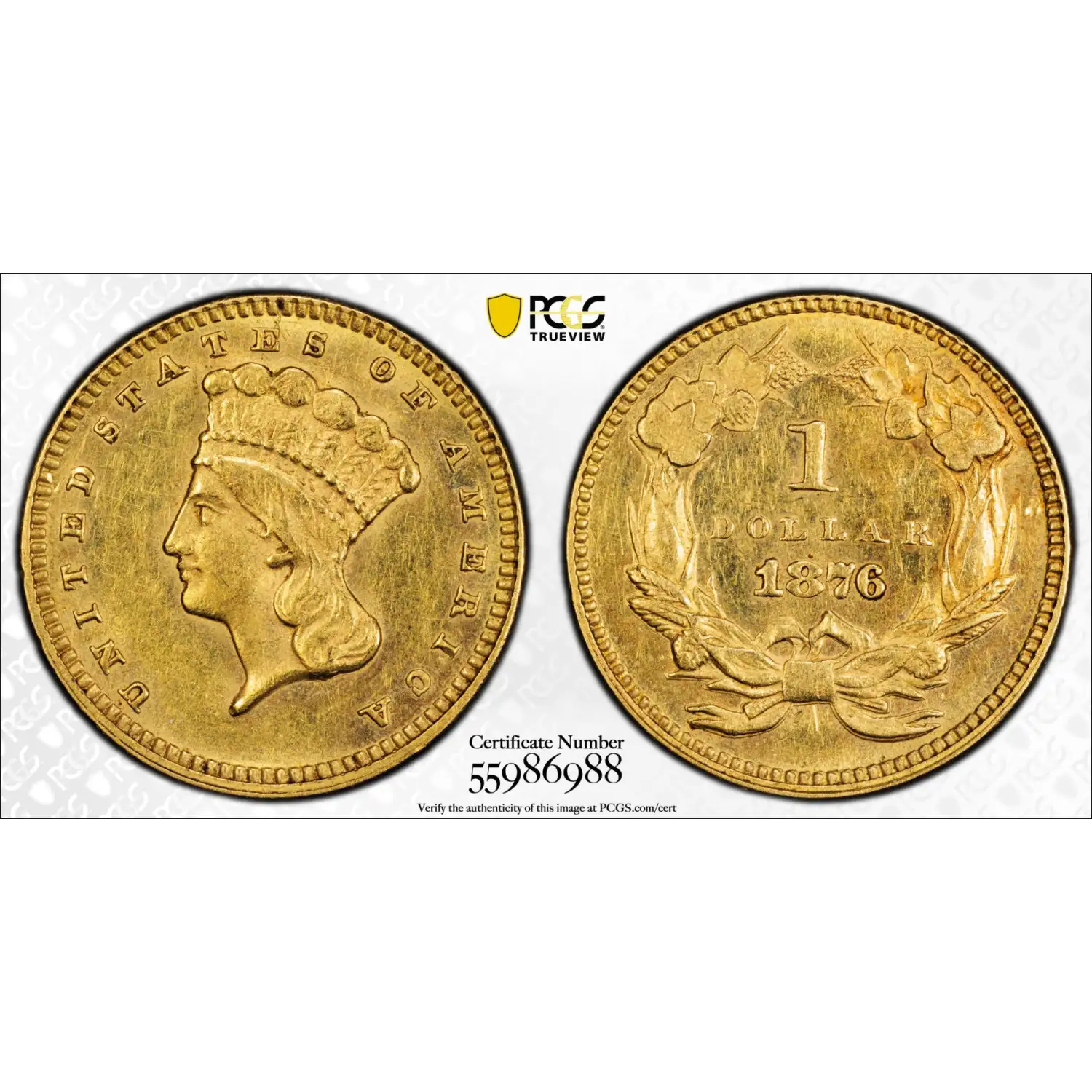 1876 Indian Princess Large Head Gold Dollar PCGS AU-58