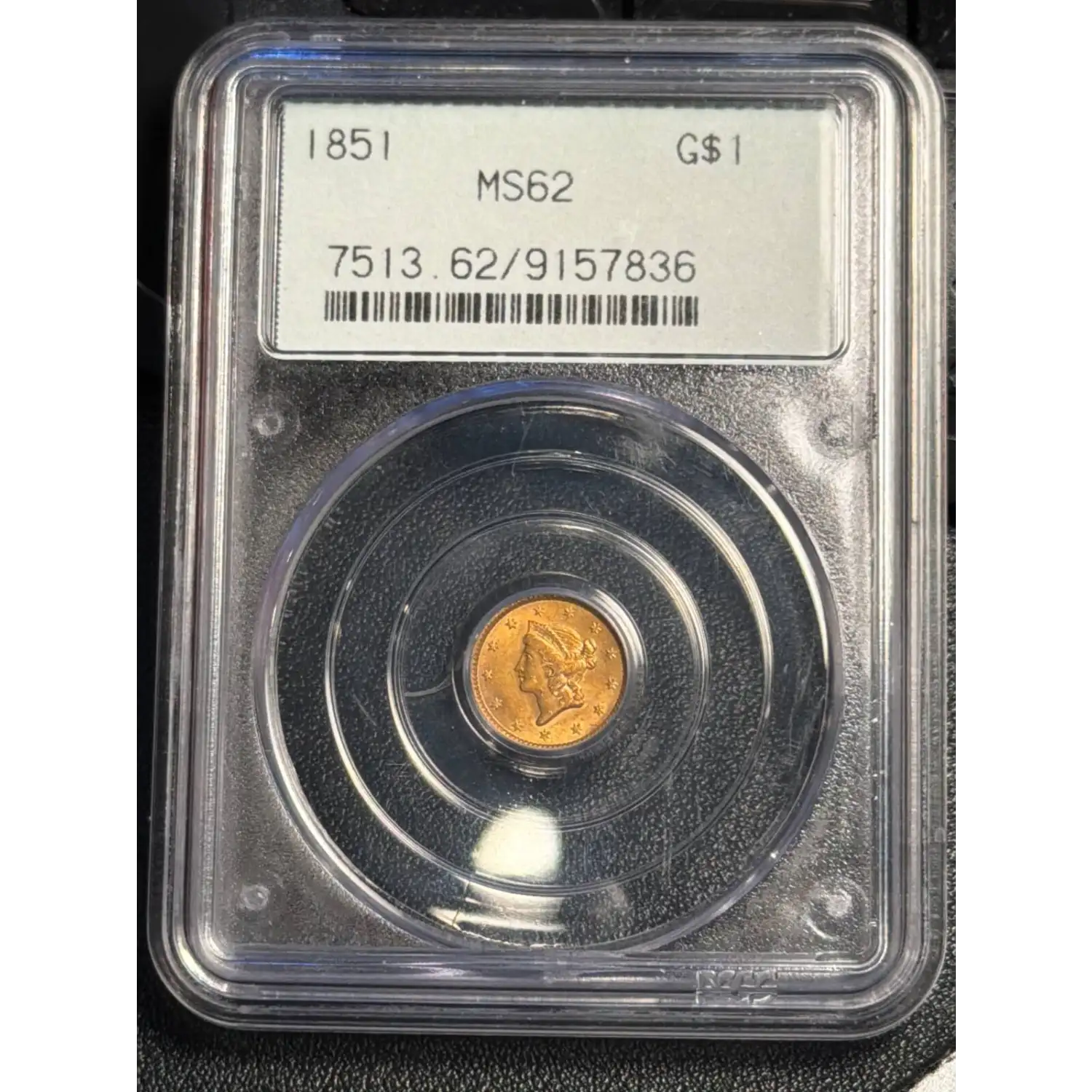 1851 Gold Dollars Liberty Head PCGS MS-62 OGH NEAT LABEL