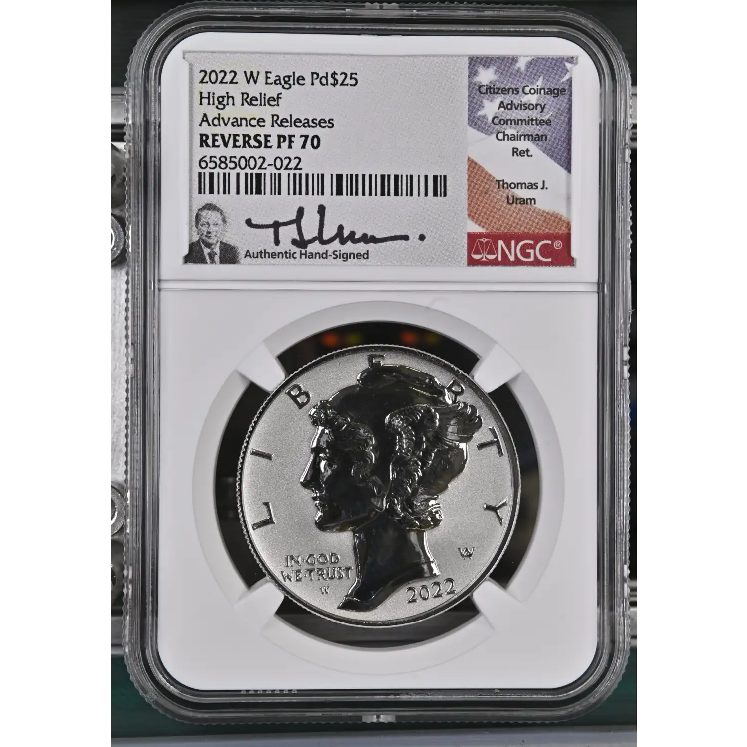 2022-W Bullion $25 Palladium Eagle NGC PF-70 High Relief Advance Releases Reverse Proof