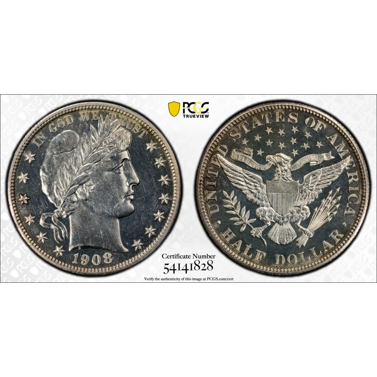 1908 Barber Half Dollar PCGS PR-63 LOOKS CAMEO