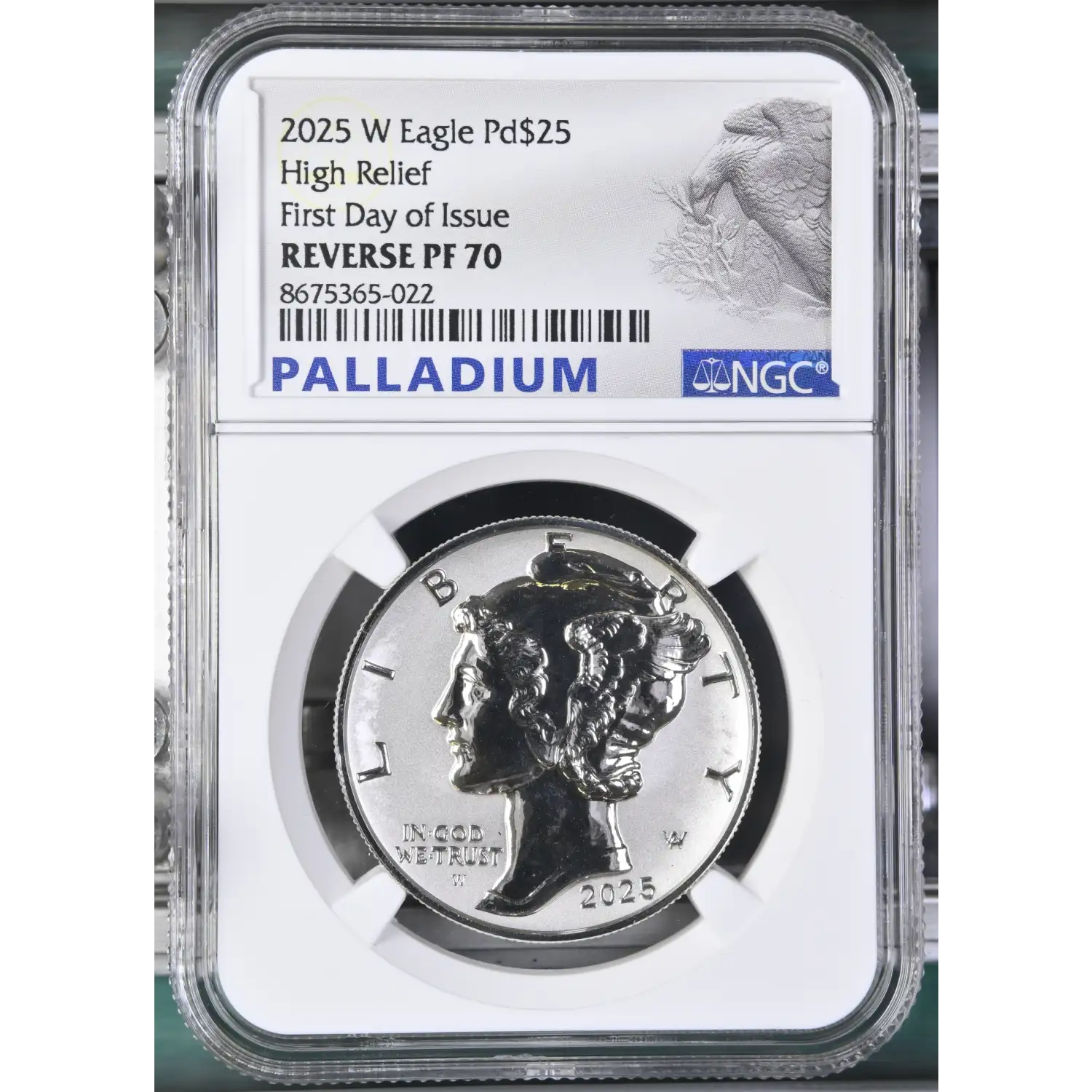 2025-W Bullion $25 Palladium Eagle NGC PF-70 FDOI REVERSE PROOF HIGH RELIEF