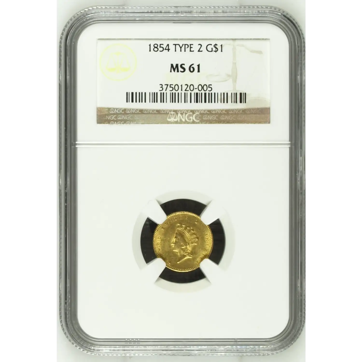 1854 Gold Dollars Indian Princess Head, Small Head NGC MS-61