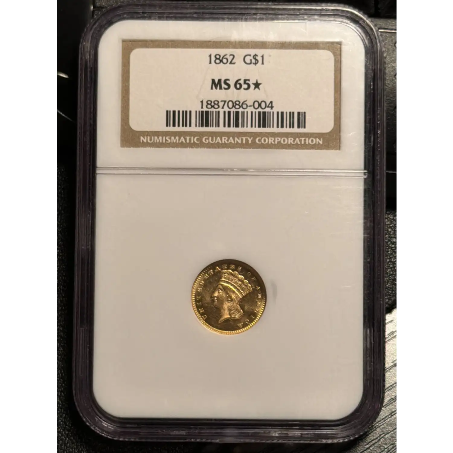 1862 Indian Princess Large Head Gold Dollar NGC MS-65* STAR LOOKS PROOFLIKE
