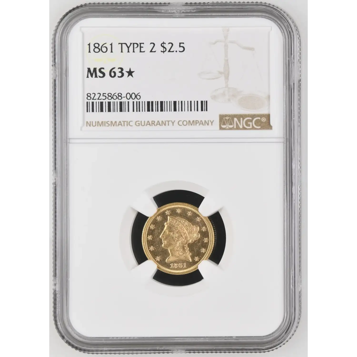 1861 $2.50 Gold Liberty Head Quarter Eagle NGC MS-63* STAR LOOKS PROOFLIKE