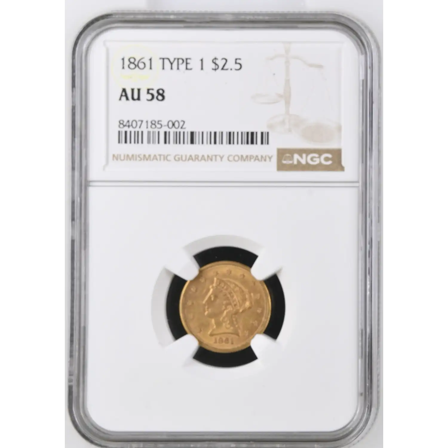 1861 $2.50 Gold Liberty Head Quarter Eagle NGC AU-58