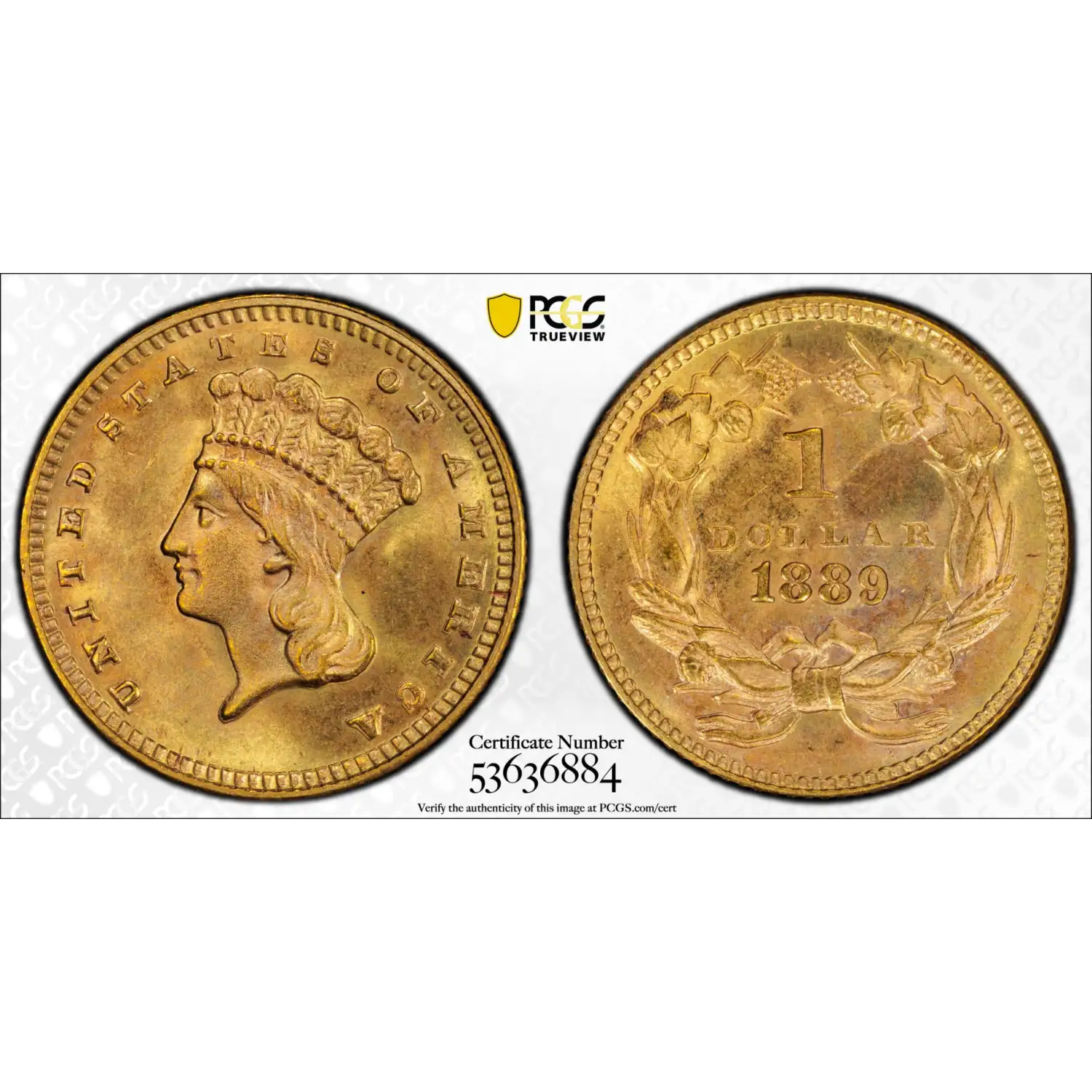 1889 Indian Princess Large Head Gold Dollar PCGS MS-67
