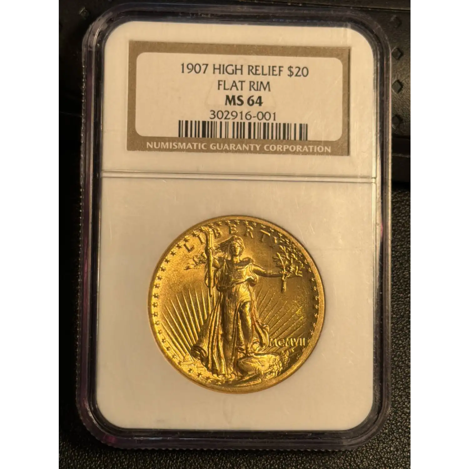 1907 Saint Gaudens Double Eagle NGC MS-64 HIGH RELIEF RLAT EDGE