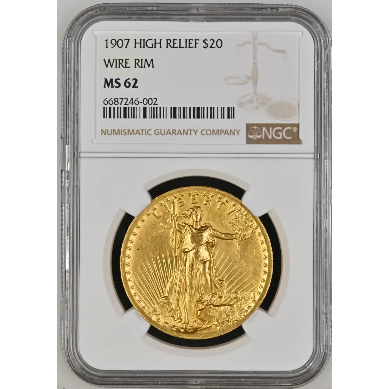 1907 Saint Gaudens Double Eagle NGC MS-62 HIGH WIRE RIM