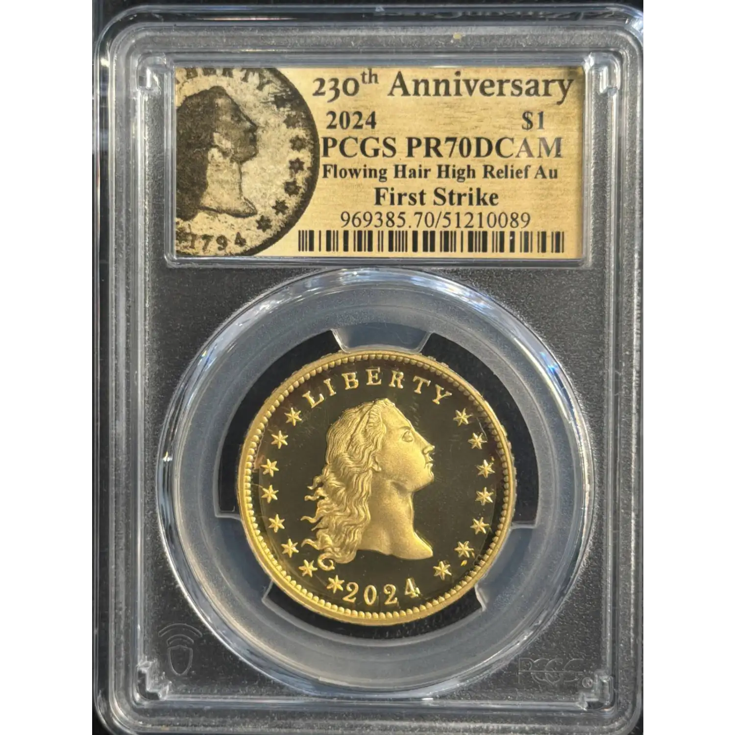 2024 Gold Flowing Hair Dollar PCGS PR-70 FIRST STRIKE FLOWING HAIR HIGH RELIEF